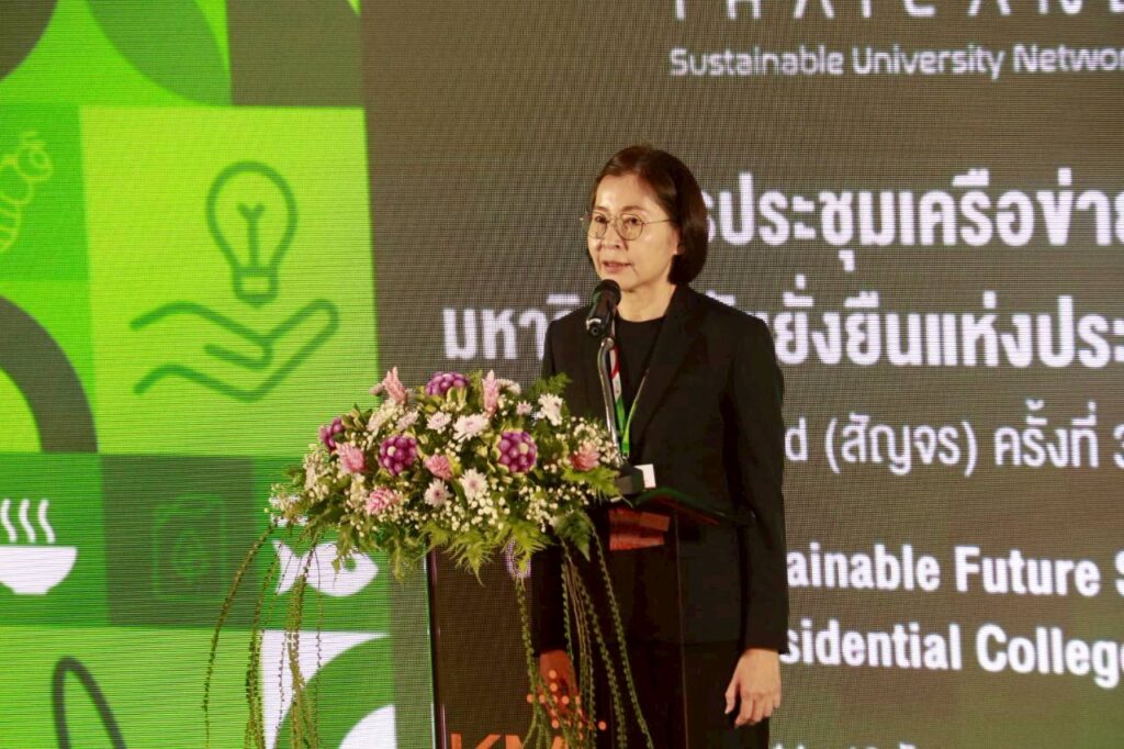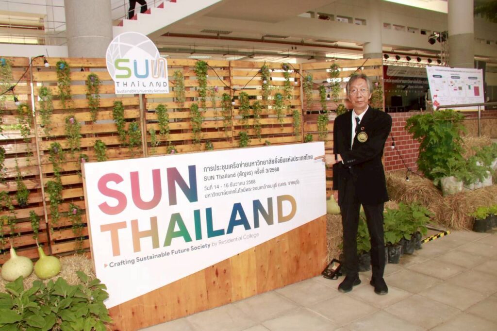และในปีนี้มหาวิทยาลัยเทคโนโลยีพระจอมเกล้าธนบุรี (มจธ.) ได้รับเกียรติเป็นเจ้าภาพจัดงานประชุม ประจำปีเครือข่ายมหาวิทยาลัยยั่งยืนแห่งประเทศไทย (SUN Thailand) สัญจร ครั้งที่ 3 ประจำปี 2568 ระหว่างวันที่ 14-16 ธันวาคม 2568 ภายใต้แนวคิด “Crafting Sustainable Future Society by Residential College : สร้างสรรค์สังคมสู่วิถีความยั่งยืน ด้วยอาศรมแห่งการเรียนรู้” จัดขึ้น ณ มหาวิทยาลัยเทคโนโลยีพระจอมเกล้าธนบุรี (มจธ.) อ.จอมบึง จ.ราชบุรี โดยมี รศ.ดร.สุวิทย์ แซ่เตีย อธิการบดี มจธ. กล่าวต้อนรับผู้เข้าร่วมงาน รศ.ดร.ณัฐพงศ์ มกระธัช ประธานเครือข่าย SUN Thailand ประจำปี 2568 กล่าวรายงาน และได้รับเกียรติจากคุณฐิติลักษณ์ คำพา ผู้ว่าราชการจังหวัดราชบุรี เป็นประธานกล่าวเปิดงาน พร้อมกล่าวปาฐกถาพิเศษเรื่อง “การพัฒนาเกษตรกรรมและการท่องเที่ยวอย่างยั่งยืน บนผืนผ้าแห่งความหลากหลายทางชาติพันธุ์” และการบรรยายพิเศษว่าด้วยการบริหารองค์กรภายใต้นโยบาย ESG ที่สอดรับกับการพัฒนาอย่างยั่งยืนในระดับพื้นที่ กรณี บริษัทผลิตไฟฟ้าราชบุรี จำกัด โดยคุณจตุพร โสภารักษ์ ผู้ช่วยกรรมการผู้จัดการใหญ่ บริษัท ราช กรุ๊ป จำกัด (มหาชน) โดยมีผู้บริหารจากมหาวิทยาลัยในเครือข่ายมหาวิทยาลัยยั่งยืนแห่งประเทศไทยกว่า 35 มหาวิทยาลัยทั่วประเทศเข้าร่วม