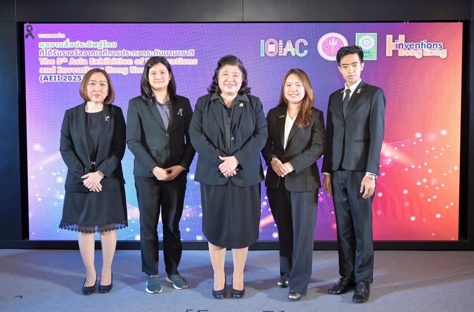 สำนักงานการวิจัยแห่งชาติ (วช.) กระทรวงการอุดมศึกษา วิทยาศาสตร์ วิจัยและนวัตกรรม (อว.) จัดงานแถลงข่าวอย่างเป็นทางการ ณ ศูนย์ข้อมูลสารสนเทศกลางด้านวิทยาศาสตร์ วิจัยและนวัตกรรมของประเทศ เพื่อประกาศผลงานและความสำเร็จอันทรงเกียรติของคณะนักประดิษฐ์และนักวิจัยไทย ที่ได้รับรางวัลจากการประกวดระดับนานาชาติ “The 5th Asia Exhibition of Innovations and Inventions Hong Kong” (AEII) ที่จัดขึ้นระหว่างวันที่ 4–5 ธันวาคม 2568 ณ เขตบริหารพิเศษฮ่องกงแห่งสาธารณรัฐประชาชนจีน โดย ดร.วิภารัตน์ ดีอ่อง ผู้อำนวยการสํานักงานการวิจัยแห่งชาติ ให้เกียรติเป็นประธานในพิธี พร้อมด้วย ผู้บริหารและบุคลากร (วช.) นักประดิษฐ์ นักวิจัย และสื่อมวลชนให้การต้อนรับ