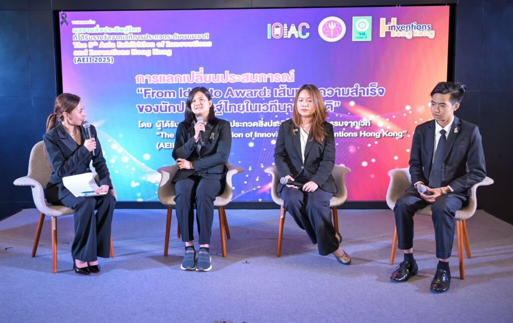 ภายหลังจากการแถลงผลรางวัล (วช.) ได้จัดการเสวนาพิเศษในหัวข้อ “From Idea to Award : เส้นทางความสำเร็จของนักประดิษฐ์ไทยในเวทีนานาชาติ” โดยได้รับเกียรติจากผู้ได้รับรางวัลสำคัญร่วมแบ่งปันประสบการณ์และมุมมองที่เป็นประโยชน์ เพื่อเป็นแรงขับเคลื่อนและแนวทางในการพัฒนาต่อยอดงานประดิษฐ์และนวัตกรรมของไทยให้ก้าวหน้ายิ่งขึ้น