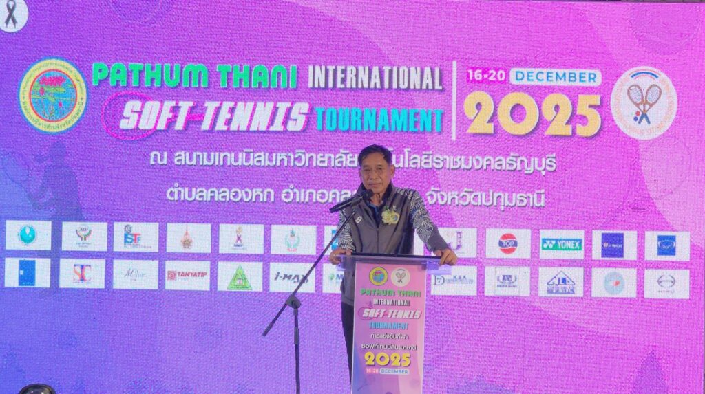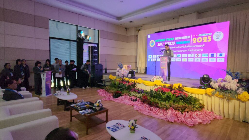 เมื่อเวลา 15.00 น. วันที่ 16 ธันวาคม 2568 พลตำรวจโท คำรณวิทย์ ธูปกระกระจ่าง นายกองค์การบริหารส่วนจังหวัดปทุมธานี เป็นประธานเปิดการแข่งขันกีฬาซอฟท์เทนนิสนานาชาติ Pathum Thani International Soft Tennis Tournament 2025 ณ ห้องประชุมกรมพละศึกษา ต.คลองหก อ. คลองหลวง จ.ปทุมธานี โดยมี นางอุดมลักษณ์ ศิริกุลเลิศรัฐ นายกสมาคมกีฬาซอฟท์เทนนิสแห่งประเทศไทย ผู้บริหารสมาคมกีฬาซอฟท์เทนนิสแห่งประเทศไทย หัวหน้าส่วนราชการ ผู้ฝึกสอนนักกีฬาซอฟท์เทนนิส และนักกีฬาซอฟท์เทนนิส จาก 9 ประเทศ เข้าร่วม ประกอบด้วย ไทย ญี่ปุ่น อินโดนีเซีย ไต้หวัน ปากีสถาน ลาว ฟิลิปปินส์ มาเลเซีย และเวียดนาม
