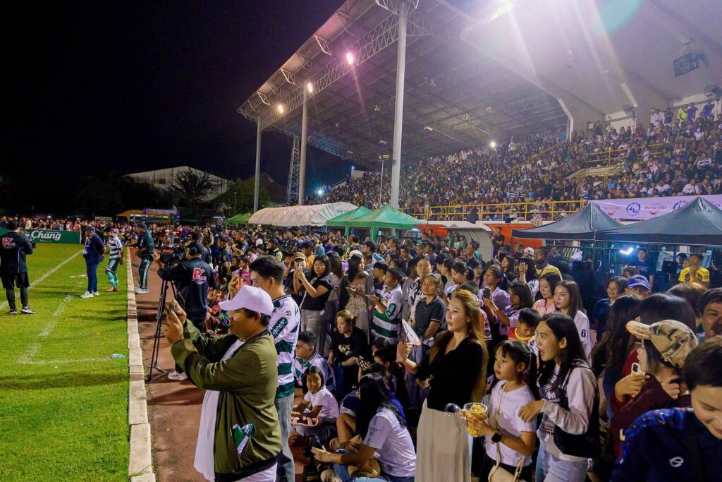 ครึ่งแรกนำก่อน! แต่ครึ่งหลังต้านไม่ไหว! เสียงเชียร์ดังกระหึ่มเมื่อนักเตะลงสู่สนาม แฟนบอลถึงกับต้องลงมานั่งติดขอบสนามเพื่อชมความมันส์!