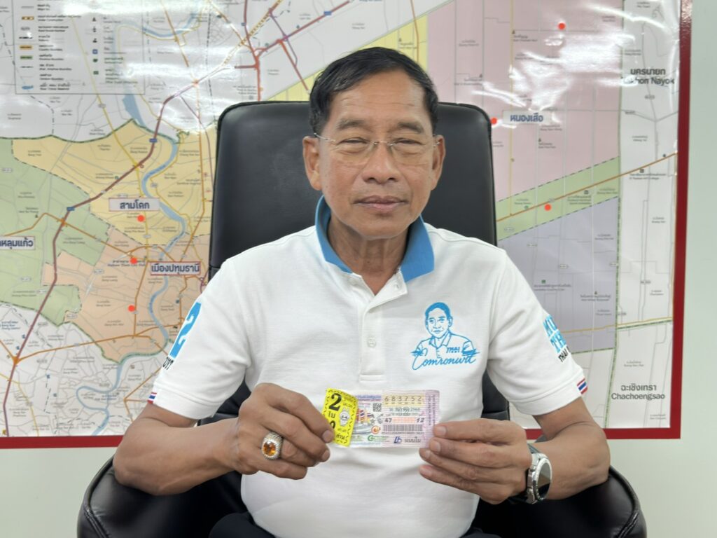 พล.ต.ท.คำรณวิทย์ ธูปกระจ่าง นายกองค์การบริหารส่วนจังหวัด ปทุมธานี กล่าวว่า เมื่อวันที่ 7 ธันวาคม 2568 หลวงปู่ศิลา ท่านได้ไปที่วัดดอนใหญ่ คลอง 8 ซึ่งทาง พระครูสังฆรักษ์ สุเทพ ฐิตพโล หรือที่รู้จักในนาม หลวงพ่อช้าง เจ้าอาวาสวัดดอนใหญ่ ซึ่งท่านโด่งดังเรื่องของการรดน้ำมนต์ ผมได้นำงบประมาณไปลงที่วัดดอนใหญ่เพื่อปลักดันให้เป็นแหล่งท่องเที่ยว ในวันนี้ ผมเป็นประธานฝ่ายฆราวาส จุดธูปเทียนชัย ในพิธีพุทธาภิเษก วัตถุมงคล ซึ่งหลวงปู่ศิลา ท่านก็เป็นองค์ประธานในพิธี ท่านก็เริ่มพิธี โดยอธิษฐานจิต บริเวณด้านหน้าท่านมีอ่างน้ำมนต์ ท่านก็ได้ใช้เทียนในการหยดทำพิธี พอท่านดับเทียน หลวงปู่ศิลาท่านก็เรียกผมเข้าไปหา คิดจะเข้าไปกราบท่านเฉยๆ แต่พอไปถึงท่านกลับชีให้ดูในอ่างน้ำมนต์ ซึ่งน้ำตาเทียนนั้นกระจายอยู่ แต่พอหลวงปู่ศิลาท่านนำนิ้วไปจิ้มในอ่างน้ำมนต์ น้ำตาเทียนที่กระจายอยู่กลับวนและรวมตัวกัน ผมก็ดูอยู่และเห็นเลขชัดเจนว่า 352 ท่านยังบอกกับมาว่าสามารถถ่ายรูปเอาไว้ได้น่ะ พอผมกำลังจะออกจากวัดก็ได้ แวะซื้อล๊อตเตอรี่ เลข 52 จำนวน 2 ใบ พอซื้อเสร็จขึ้นรถมาก็เล่าเรื่องที่เห็นให้ลูกน้องฟัง และก็ได้บอกต่อๆ กันไป จนรับรู้กันทั่ว อบจ. โดยปกติตนเองไม่เคยมีโชคจากรางวัลสลากกินแบ่งรัฐบาล เลยแต่พรรคพวกกันบอกว่ามีเลข 52 อยู่ 100 ใบ ผมก็เลยเอามาหมดเลย ไม่ดิดอะไร จนเมื่อวาน (16 ธ.ค.68) พรรคพวกที่เป็นคนซื้อ สลากกินแบ่งรัฐบาลให้ ได้โทรมาบอกกับตนเองว่า ถูกเลขท้าย 2 ใบ จำนวน 100 ใบ ผมจึงได้ลองสอบถามไปยัง ส.อบจ. และ เจ้าหน้าที่หลายๆ คน ใน อบจ. ก็พบว่าถูกกันทั่วหน้า เพราะเราได้เลขมาเราก็ส่งลงในกลุ่มไลน์ กระจายกันออกไป ซึ่งเงินที่ได้มาจะนำไปสร้างบ้านให้พลทหารวายุทั้งหมดให้สำเร็จตามวัตถุประสงค์ เพื่อเป็นขวัญและกำลังใจให้กับน้อง ๆ ทหารและครอบครัวที่ทำหน้าที่เพื่อประเทศชาติ ซึ่งตอนนี้ผมได้ให้ ทางเจ้าหน้าที่ อบจ.ปทุมธานี เปิด บัญชีเฉพาะกิจ เพื่อสร้างบ้านให้พ่อกับแม่ ของพลทหารวายุ เพื่อสืบสานเจตนารมณ์ ของพลทหารวายุ ซึ่งจะใช้เวลาในการก่อนสร้าง 2 เดือน งบประมาณในการก่อสร้างไม่เกิน 1.5 ล้านบาท โดยการถูกรางวัลของนายกแจ๊สและเจ้าหน้าที่ อบจ.ปทุมธานีครั้งนี้ ไม่เพียงแต่นำความโชคดีมาให้ แต่ยังการแบ่งปันและทำประโยชน์เพื่อสังคม