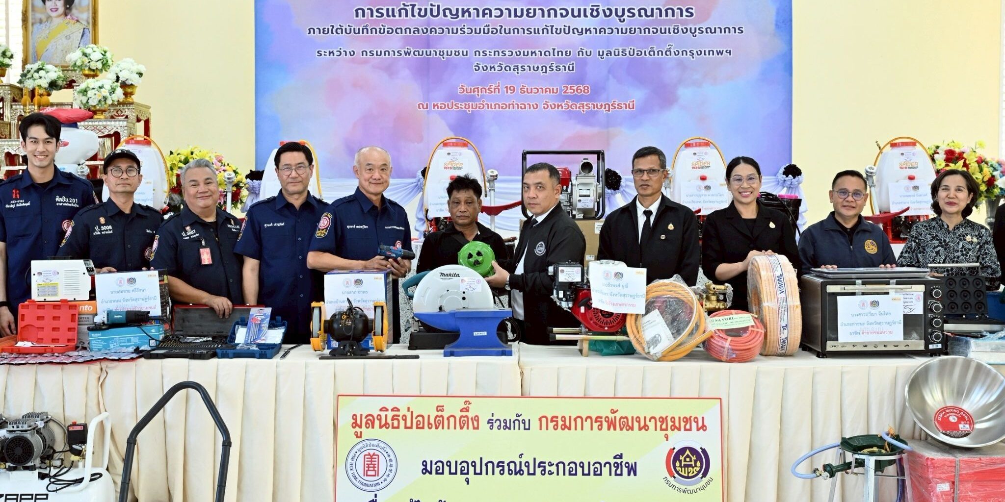 มูลนิธิป่อเต็กตึ๊ง เดินสายสร้างอาชีพ สร้างชีวิตอย่างยั่งยืนต่อเนื่อง มอบอุปกรณ์ประกอบอาชีพ ให้แก่ครัวเรือนยากจนในพื้นที่จังหวัดสุราษฎร์ธานี รวมมูลค่ากว่า 6.9 แสนบาท พร้อมนำหน่วยแพทย์เคลื่อนที่ออกบริการในพื้นที่ฟรี ณ บริเวณหอประชุมที่ว่าการอำเภอท่าฉาง จังหวัดสุราษฎร์ธานี