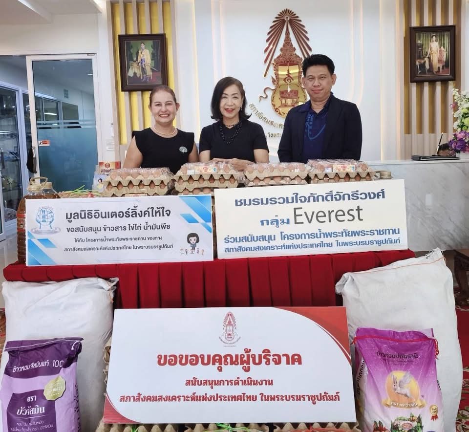 ร่วมรับมอบวัตถุดิบและสิ่งของอุปโภคบริโภค เพื่อสนับสนุนโครงการ “น้ำพระทัยพระราชทาน” จาก ชมรมรวมใจภักดิ์จักรีวงศ์ โดย คุณณฐพร กายสิทธิ์ ประธานชมรม ร่วมกับกลุ่ม Everest นำโดย คุณนิภาพร รัตนพันธ์ และ คุณฐิติพล พงวิรัตน์สุข