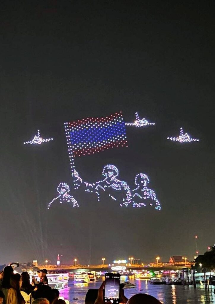 และบริเวณสะพานปฐมบรมราชานุสรณ์ (สะพานพระพุทธยอดฟ้า) จัดแสดงภายใต้แนวคิด “Threads of Glory สายใยแห่งความรุ่งเรือง” ด้วยเทคโนโลยีแสงสีเสียงสุดล้ำสมัย Light & Sound ผสานเทคโนโลยีพิเศษ พร้อมการแสดงโดรนสุดอลังการกว่า 500–1,000 ลำ ภายใต้แนวคิด “แสงแห่งสยาม แม่ของแผ่นดิน” ที่จะส่องสว่างเหนือน่านน้ำเจ้าพระยาในค่ำคืนพิเศษ โดยการแสดงโดรน 500 ลำ จัดแสดง วันที่ 14, 21, พฤศจิกายน และ วันที่ 5, 12, 19 ธันวาคม 2568 วันละ 1 รอบ (เวลา 20.45 น.) และการแสดงโดรน 1,000 ลำ จัดแสดง วันที่ 9, 15, 22, 28, 29 พฤศจิกายน และ วันที่ 6, 13, 20 ธันวาคม 2568 วันละ 1 รอบ (เวลา 20.45 น.)