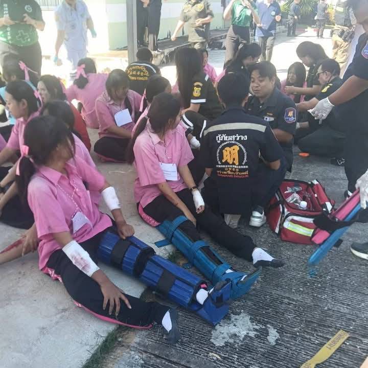 ได้มอบหมายให้เจ้าหน้าที่กู้ภัยสว่างอริโยเข้าร่วมการซ้อมแผนเผชิญเหตุอาคารถล่ม ไฟไหม้อาคาร