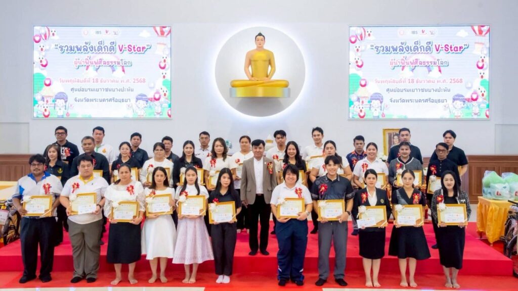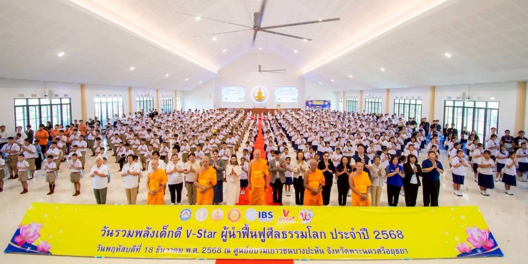 “งานรวมพลังเด็กดี V-Star” ครั้งนี้ มีผู้บริหาร คณะครู และนักเรียน จำนวนกว่า 500 คน จากสถานศึกษา 33 แห่ง จ.พระนครศรีอยุธยา เข้าร่วมกิจกรรม โดยภายในงานมีกิจกรรมที่ส่งเสริมการเรียนรู้ทางพระพุทธศาสนาให้แก่เยาวชนคนรุ่นใหม่มากมาย อาทิ พิธีกล่าวแสดงตนเป็นพุทธมามกะ ร่วมกันสวดมนต์บทธัมมจักรกัปปวัตนสูตร ฐานกิจกรรม V-Star Active Learning ชมภาพยนตร์ Animation พุทธประวัติ และ “ภูมินรก ภพสวรรค์ แดนอัศจรรย์หลังความตาย” พร้อมทั้งพิธีมอบเกียรติบัตร และทุนการศึกษาสนับสนุนโรงเรียนที่เข้าร่วมกิจกรรมด้วย