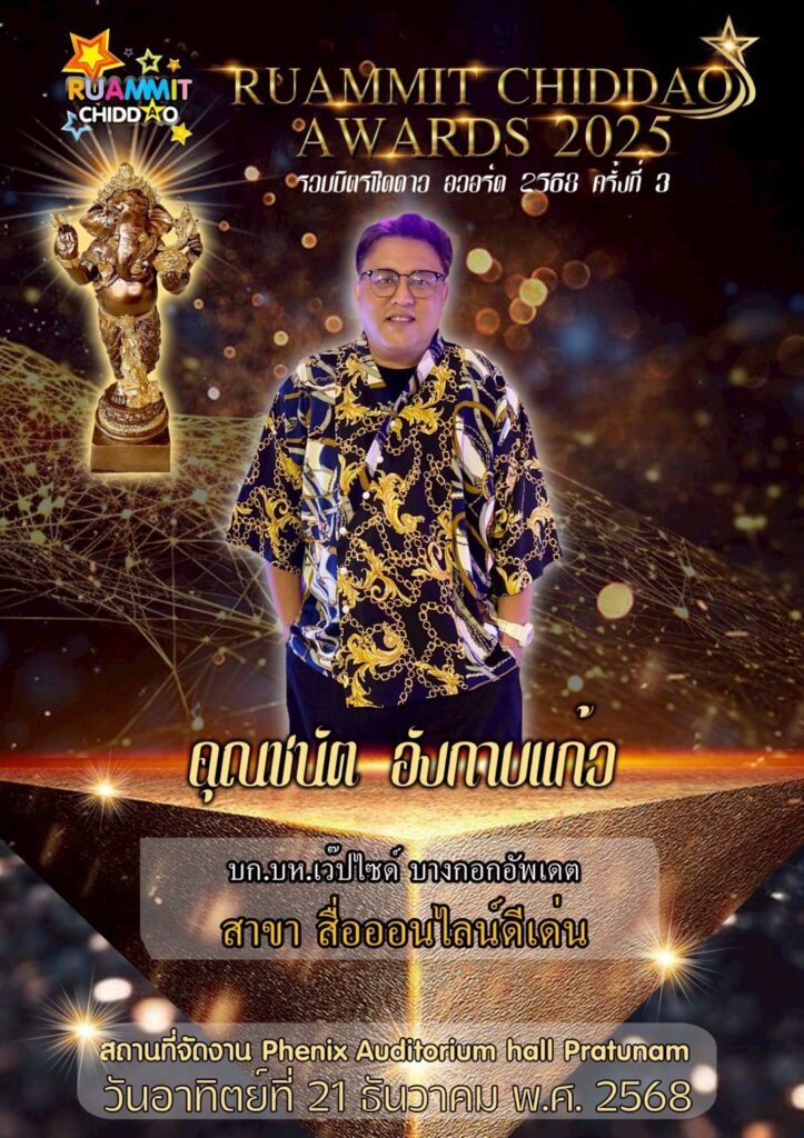 เมื่อวันอาทิตย์ที่ 21 ธันวาคม พ.ศ. 2568 ที่ผ่านมา ได้มีการจัดงานประกาศรางวัล RUAMMIT CHIDDAO AWARDS 2025 (ร่วมมิตรชิดดาว อวอร์ด 2568 ครั้งที่ 3) ณ Phenix Auditorium Hall Pratunam เพื่อยกย่องเชิดชูเกียรติบุคคลและองค์กรที่มีผลงานโดดเด่นในสาขาต่าง ๆ ของวงการสื่อและสังคม