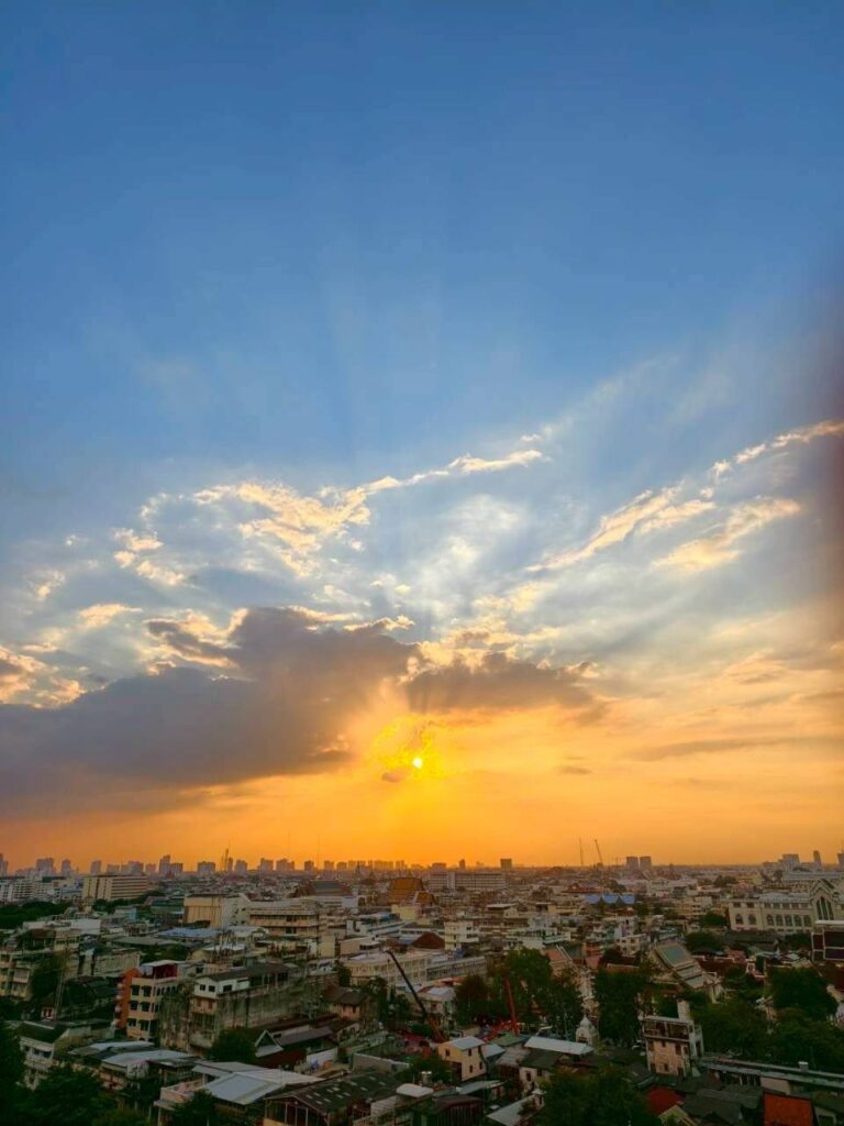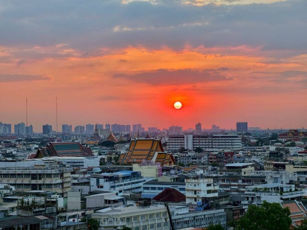 ภูเขาทองได้รับการยกย่องจากนักท่องเที่ยวชาวต่างชาติว่าเป็นจุดที่ดีที่สุดในการชมความงามของพระอาทิตย์ตกดิน และความงามยามค่ำคืนของกรุงเทพมหานคร