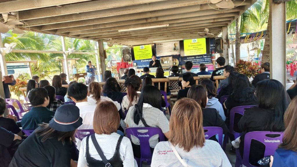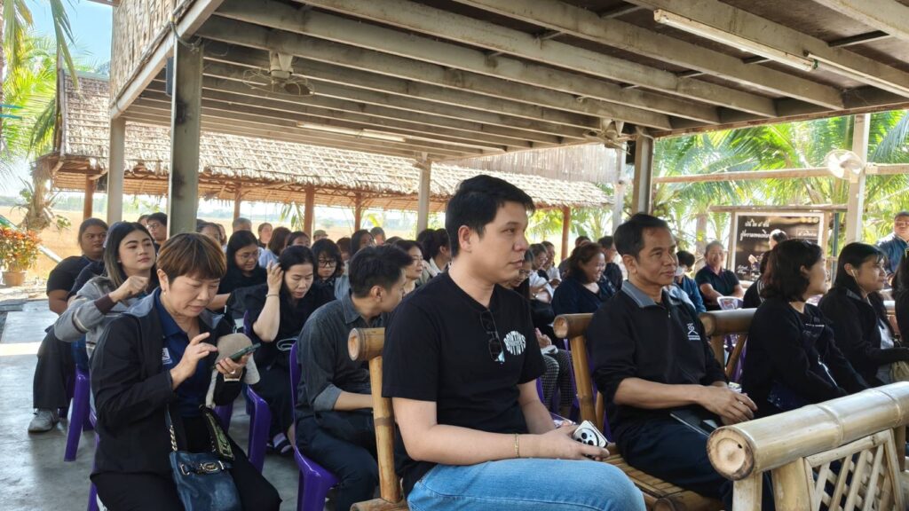 จากนั้น นายแรม เชียงกา ครูใหญ่โรงเรียนเศรษฐกิจพอเพียงบ้านหนองทราย ได้บรรยายถึงความเป็นมา แนวคิด และกระบวนการพัฒนาศูนย์เรียนรู้เศรษฐกิจพอเพียงบ้านหนองทราย ซึ่งเป็นแหล่งเรียนรู้สำคัญที่บูรณาการองค์ความรู้ด้านเศรษฐกิจพอเพียง สุขภาพชุมชน และการมีส่วนร่วมของประชาชนในพื้นที่ การศึกษาดูงานครั้งนี้มีวัตถุประสงค์เพื่อเสริมสร้างประสบการณ์ร่วมกันระหว่างหน่วยงานภาครัฐและชุมชน ตลอดจนแลกเปลี่ยนองค์ความรู้ด้านการจัดการสุขภาวะชุมชนอย่างยั่งยืน โดยเน้นการนำต้นแบบการพัฒนาชุมชนที่เข้มแข็งไปปรับใช้ในบริบทพื้นที่อื่น ๆ