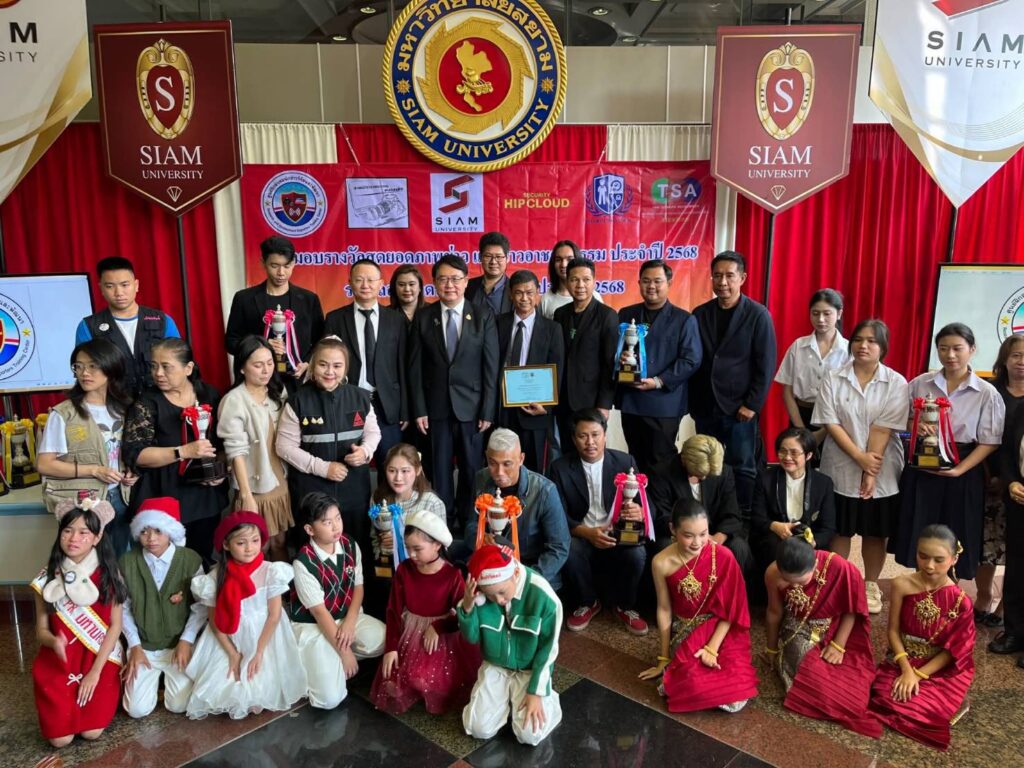 วันที่ 24 ธ.ค.2568 ที่ มหาวิทยาลัยสยาม ถนนเพชรเกษม แขวงบางหว้า เขตภาษีเจริญ กรุงเทพมหานคร : นาย ศิโรจน์ มิ่งขวัญ นายกสมาคมนักข่าวอาชญากรรมแห่งประเทศไทย เปิดเผยว่า ในพิธีมอบรางวัลสุดยอดข่าวอาชญากรรม ประจำปี 2568 และรางวัลสุดยอดนักข่าวป้ายแดง ประจำปี 2568 มี ดร.พรชัย มงคลวนิช อธิการบดีมหาวิทยาลัยสยาม เป็นประธานในพิธี มี ศูนย์ฝึกอบรมรักษาความปลอดภัย เอชไอพี คลาวด์ สนับสนุนการจัดงาน มีคุณอรวรรณ บุณยธาดา ผู้อำนวยการศูนย์ฝึกอบรมนักข่าววิจัยและพัฒนา ภายใต้สมาคมนักข่าวอาชญากรรมแห่งประเทศไทย เป็นประธานคณะกรรมการตัดสิน