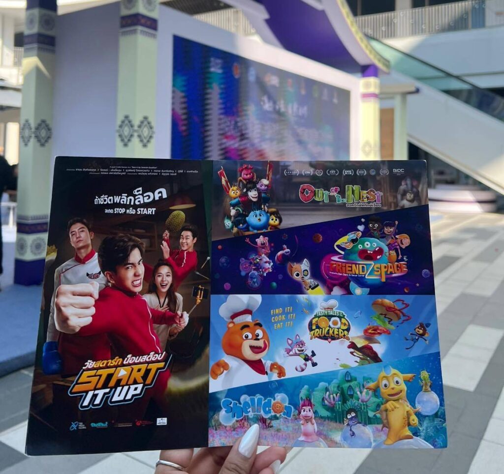 ผลงานที่นำไปร่วมเสนอในครั้งนี้ประกอบด้วย ภาพยนตร์ Start It Up วัยสตาร์ท น็อนสต็อป และ อคิลลิสเคิร์ส กับ สมบัติต้องคำสาป (Achilles Curse and the Curse of Treasure) รวมถึงซีรีส์แอนิเมชัน 4 เรื่อง ได้แก่ Out of the Nest องครักษ์พิทักษ์เจี๊ยบ, Shelldon, Food Truckers และ Friendzspace นอกจากนี้ ยังมีภาพยนตร์ Televil มันแอบในจอ ผลงานจากบริษัท ไนท์ เอดจ์ พิคเจอร์ส เข้าร่วมการเจรจาทางธุรกิจในเวทีระดับนานาชาติอีกด้วย