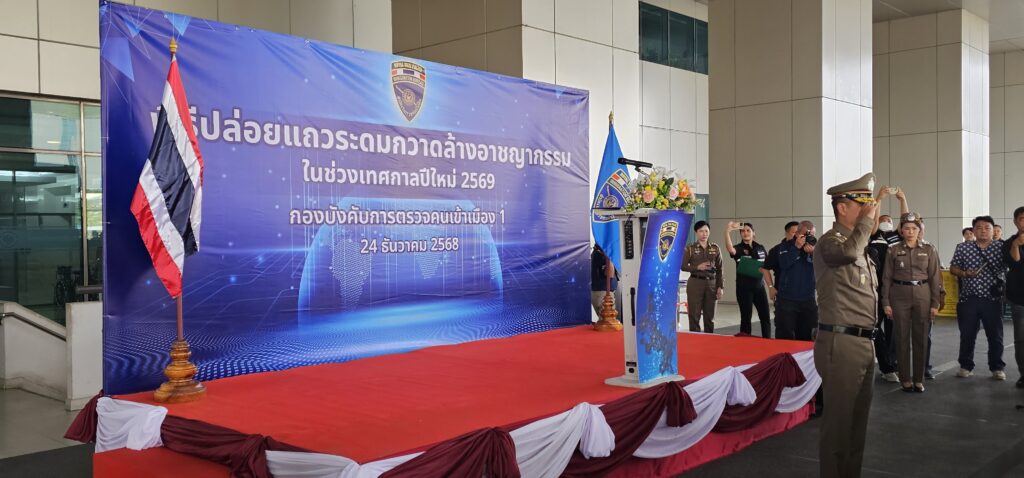 กองบังคับการตรวจคนเข้าเมือง 1 ได้เล็งเห็นถึงความสำคัญในการป้องกันปราบปรามอาชญากรรมและการรักษาความสงบเรียบร้อยของประชาชนในพื้นที่กรุงเทพมหานคร จึงได้จัดพิธีปล่อยแถวระดมกวาดล้างอาชญากรรมในห้วงเทศกาลปีใหม่ 2569 ในวันพุธที่ 24 ธันวาคม 2568 เวลา 15.00 ณ บริเวณหน้าประตู 1 (ทิศตะวันออก) ชั้น 2 อาคารรัฐประศาสนภักดี (อาคาร B) ศูนย์ราชการเฉลิมพระเกียรติฯ ถนนแจ้งวัฒนะ แขวงทุ่งสองห้อง เขตหลักสี่ กรุงเทพมหานคร โดยมี พลตำรวจตรี ปรัชญา ประสานสุข รองผู้บัญชาการสำนักงานตรวจคนเข้าเมืองเป็นประธาน และมีพลตำรวจตรี ประสาธน์ เขมะประสิทธิ์ ผู้บังคับการตรวจคนเข้ามือง 1 พร้อมด้วยข้าราชการตำรวจในสังกัดกองบังคับการตรวจคนเข้าเมือง 1 จำนวน 50 นาย เข้าร่วมพิธีปล่อยแถว ซึ่งมีเป้าหมายระดมกวาดล้างคนต่างด้าวที่กระทำความผิดตามพระราชบัญญัติคนเข้าเมือง พ.ศ.2522 ในพื้นที่กรุงเทพมหานคร ได้แก่ การลักลอบหลบหนีเข้าเมืองโดยผิดกฎหมาย การอยู่เกินกำหนดอนุญาต (Overstay) การนำพา และขบวนการนำพาคนต่างด้าวเข้ามาในราชอาณาจักรโดยผิดกฎหมาย การช่วยเหลือซ่อนเร้นคนต่างด้าวให้รอดพ้นจากการจับกุม คนต่างด้าวที่เข้ามาตั้งกลุ่มแก๊งและกระทำความผิด หรือการแสดงสัญลักษณ์ที่แสดงออกถึงการไม่เคารพต่อกฎหมาย ส่งผลกระทบต่อความมั่นคงทั้งในที่สาธารณะหรือในสื่อสังคมออนไลน์ก็ตาม