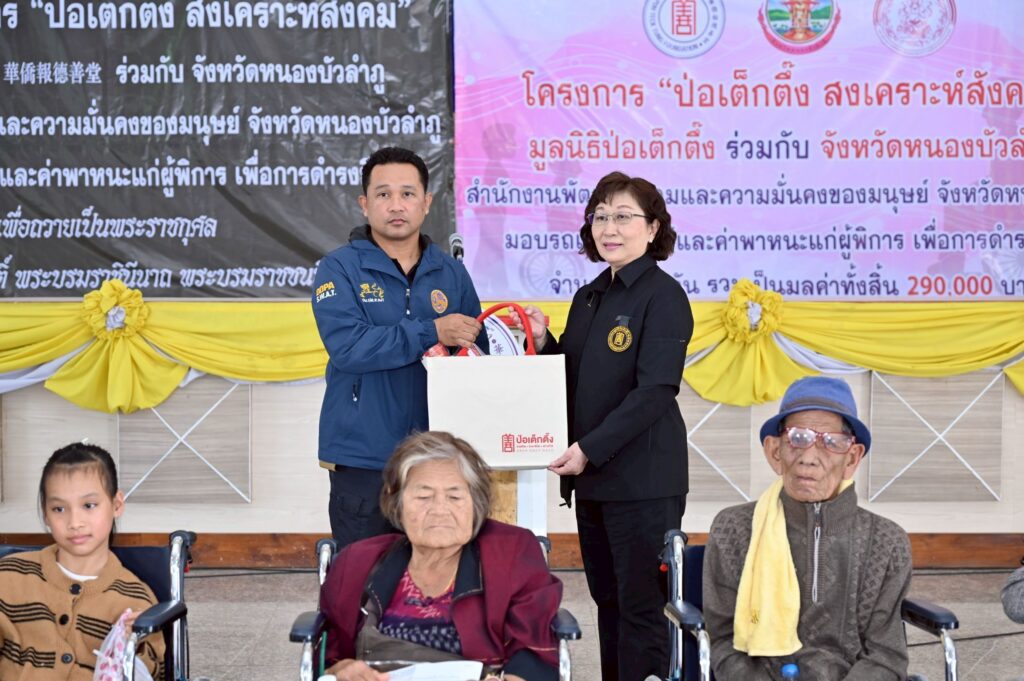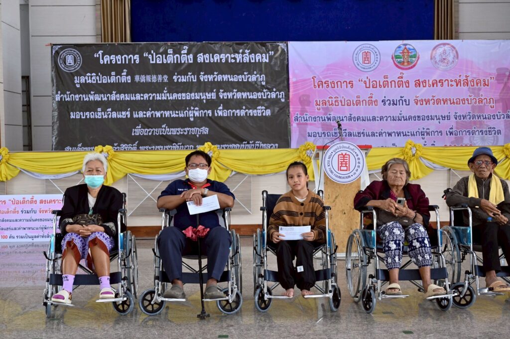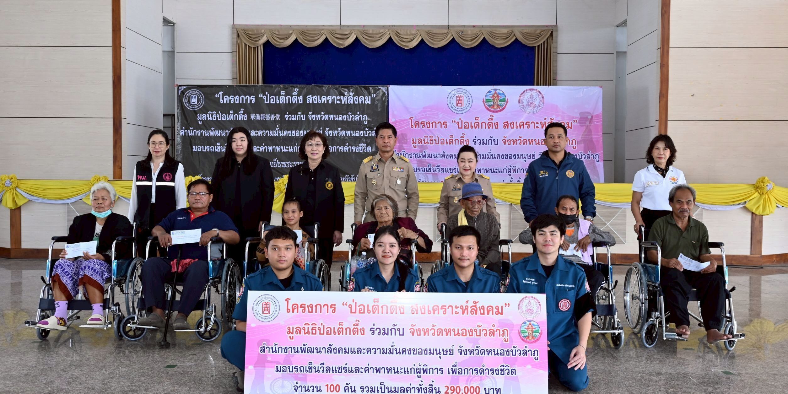 มูลนิธิป่อเต็กตึ๊ง ขยายความช่วยเหลือผู้พิการด้อยโอกาส มอบรถเข็นวีลแชร์พร้อมค่าพาหนะแก่ผู้พิการ 100 คน ในพื้นที่จังหวัดหนองบัวลำภู เพื่อถวายเป็นพระราชกุศลแด่สมเด็จพระนางเจ้าสิริกิติ์ พระบรมราชินีนาถ พระบรมราชชนนีพันปีหลวง ณ ที่ว่าการอำเภอเมืองหนองบัวลำภู อำเภอเมือง จังหวัดหนองบัวลำภู