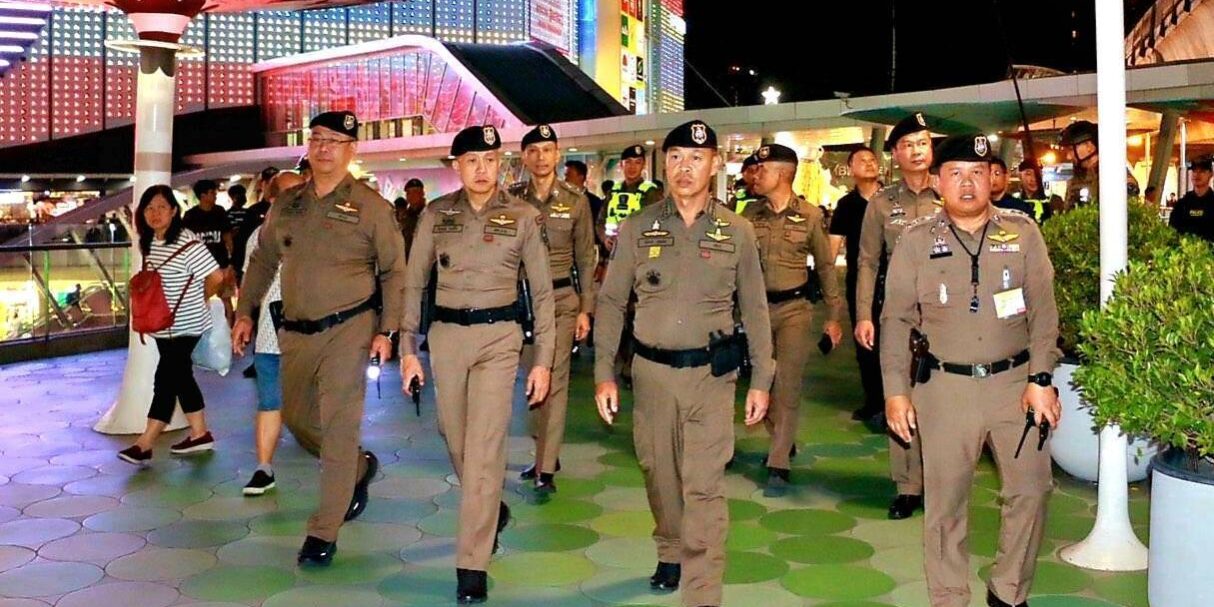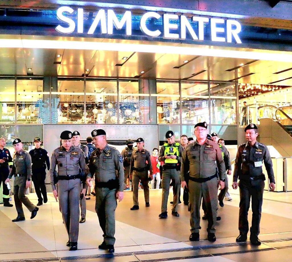พ.ต.อ.ศิริชาติ จันทร์พรมมา ผกก.สน.ปทุมวัน พร้อมเจ้าหน้าที่ตำรวจ