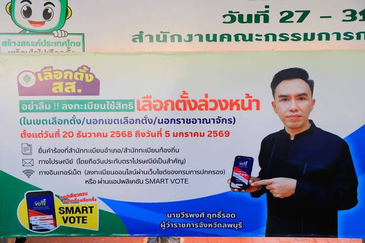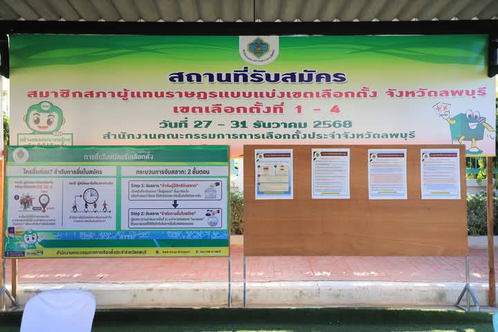 สำหรับการรับสมัคร ส.ส. แบบแบ่งเขตเลือกตั้ง จะมีขึ้นตั้งแต่วันที่ 27 – 31 ธันวาคม 2568 เวลา 08.30 – 16.30 น. สามารถสอบถามรายละเอียดเพิ่มเติมและติดตามข้อมูลข่าวสารการเลือกตั้งสมาชิกสภาผู้แทนราษฎร ได้ที่เว็บไซต์สำนักงานคณะกรรมการการเลือกตั้ง www.ect.co.th หรือสำนักงานคณะกรรมการการเลือกตั้งประจำจังหวัดลพบุรี และบริการสายด่วน 1444 หรือ 0 3642 1594