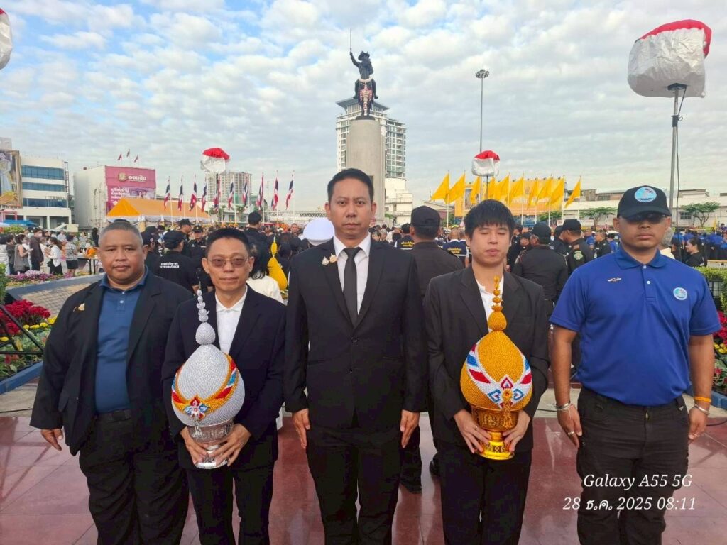 วันที่ 28 ธันวาคม 2568 หัวหน้าฝ่ายกิจการกำลังพลสำรอง ศคร.ศสร. มอบหมายให้ ว่าที่พันตรี ชนินทร์ ศรีแก้ว รองหัวหน้าฝ่ายกิจการกำลังพลสำรอง ศคร.ศสร. เป็นผู้แทนคณะกรรมการ และสมาชิก ศคร.ศสร. ร่วมพิธีวางถวายพานพุ่มเงิน-พานพุ่มทอง เนื่องในวันสมเด็จพระเจ้าตากสินมหาราช ประจำปี 2568 ณ พระบรมราชานุสาวรีย์สมเด็จพระเจ้าตากสินมหาราช (วงเวียนใหญ่) เขตคลองสาน เริ่มพิธี เวลา ๐๖.๓๐ น.