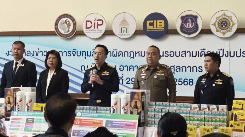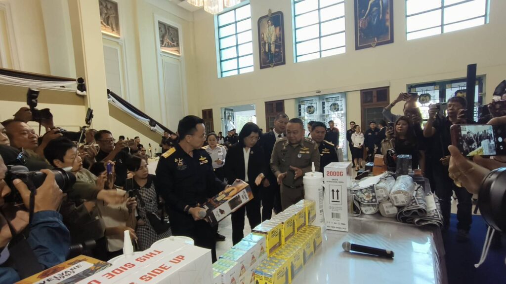 วันนี้ (29 ธันวาคม 2568) นายพันธ์ทอง ลอยกุลนันท์ อธิบดีกรมศุลกากร แถลงข่าวผลการจับกุมสินค้าผิดกฎหมายที่สำคัญในรอบสามเดือน ปีงบประมาณ พ.ศ. 2569 มูลค่ากว่า 1,600 ล้านบาท โดยมี นางอรมน ทรัพย์ทวีธรรม อธิบดีกรมทรัพย์สินทางปัญญา พล.ต.ท.ณัฐศักดิ์ เชาวนาศัย ผู้บัญชาการตำรวจสอบสวนกลาง (CIB) นายพีรพงศ์ รำพึงจิตต์ ผู้อำนวยการส่วนปฏิบัติการข่าวและปราบปรามยาเสพติด 6 คณะกรรมการป้องกันและปราบปรามยาเสพติด (ปปส.) และ พ.อ. กอบปิติ ถาวรพฤกษ์ ผู้อำนวยการกอง 12 สำนักปฏิบัติการข่าว ศูนย์รักษาความปลอดภัย กองบัญชาการกองทัพไทย (ศรภ.) เข้าร่วมในการแถลงข่าวครั้งนี้ ณ ห้องโถง อาคาร 1 กรมศุลกากร