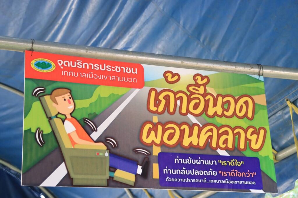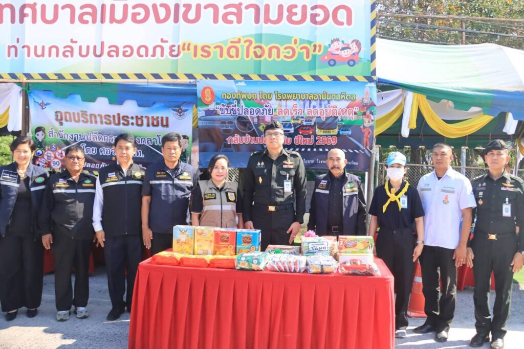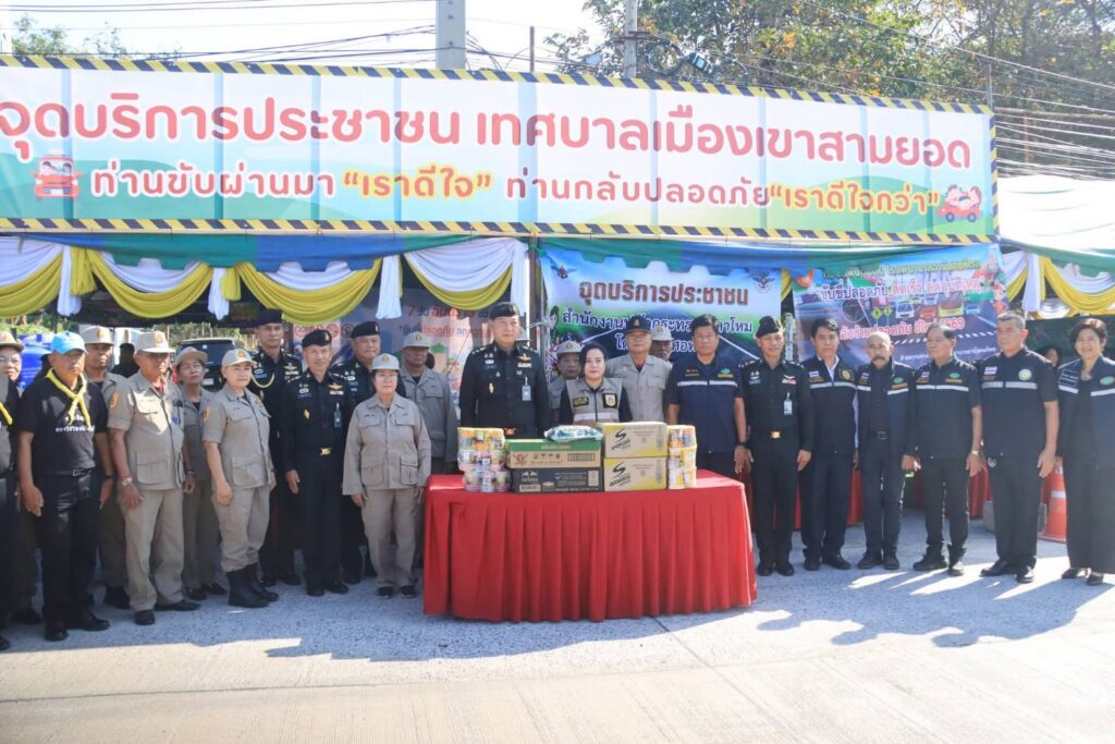 โดยเทศบาลฯ บูรณาการความร่วมมือ ร่วมกับโรงพยาบาลอานันทมหิดล ศูนย์อำนวยการสร้างอาวุธ ศูนย์การอุตสาหกรรมป้องกันประเทศและพลังงานทหาร กองพลทหารปืนใหญ่ เจ้าหน้าที่ อปพร. เจ้าหน้าที่ อสม.ตำบลเขาสามยอด มูลนิธิฯ และกลุ่มภาคีเครือข่าย พร้อมทั้ง อำนวยความสะดวกให้บริการตรวจสภาพ-ซ่อมรถระหว่างการเดินทาง บริการน้ำและเครื่องดื่ม บริการนวดผ่อนคลาย บริการแช่มือ-แช่เท้าสมุนไพร เพื่อให้ประชาชนเดินทางได้อย่างปลอดภัย ห่างไกลจากอุบัติเหตุตลอดเทศกาลปีใหม่นี้
