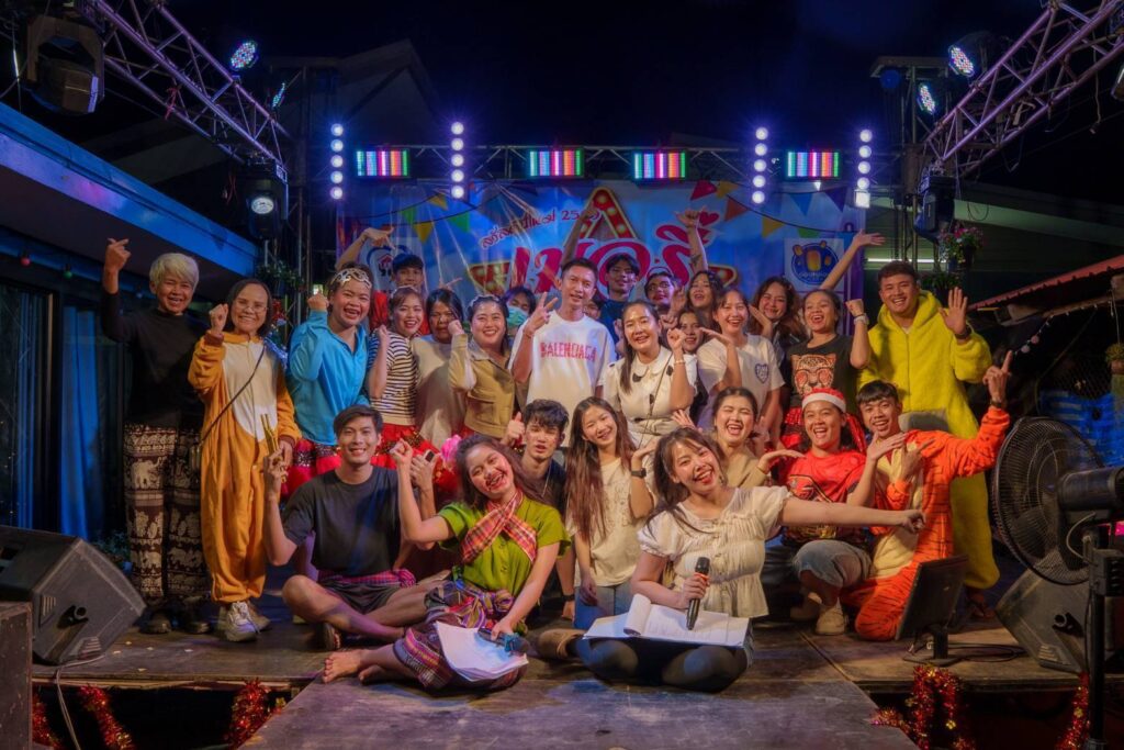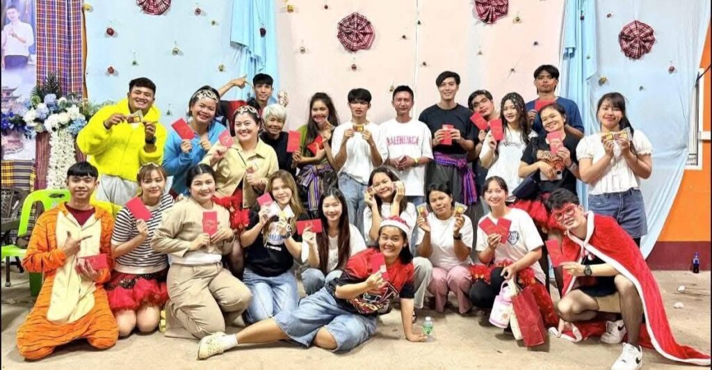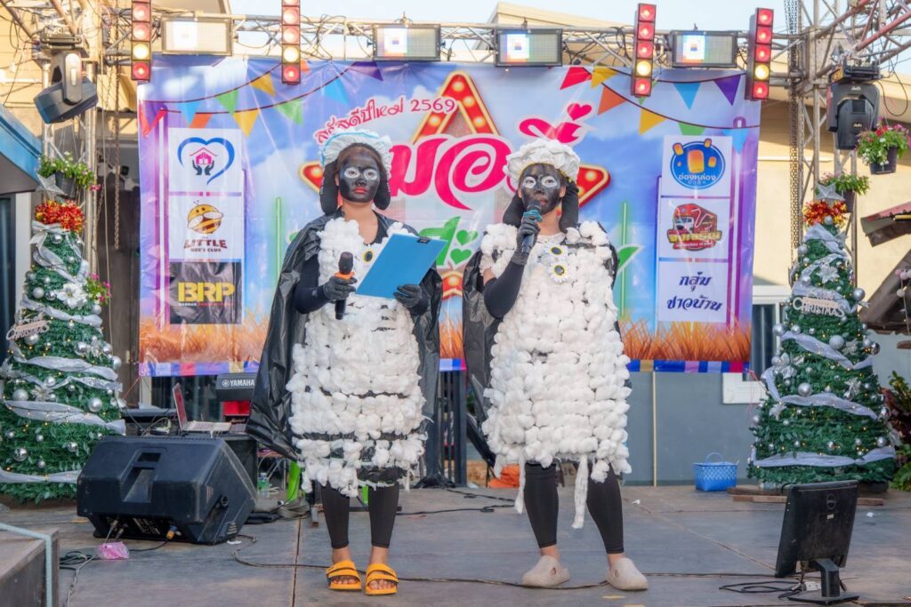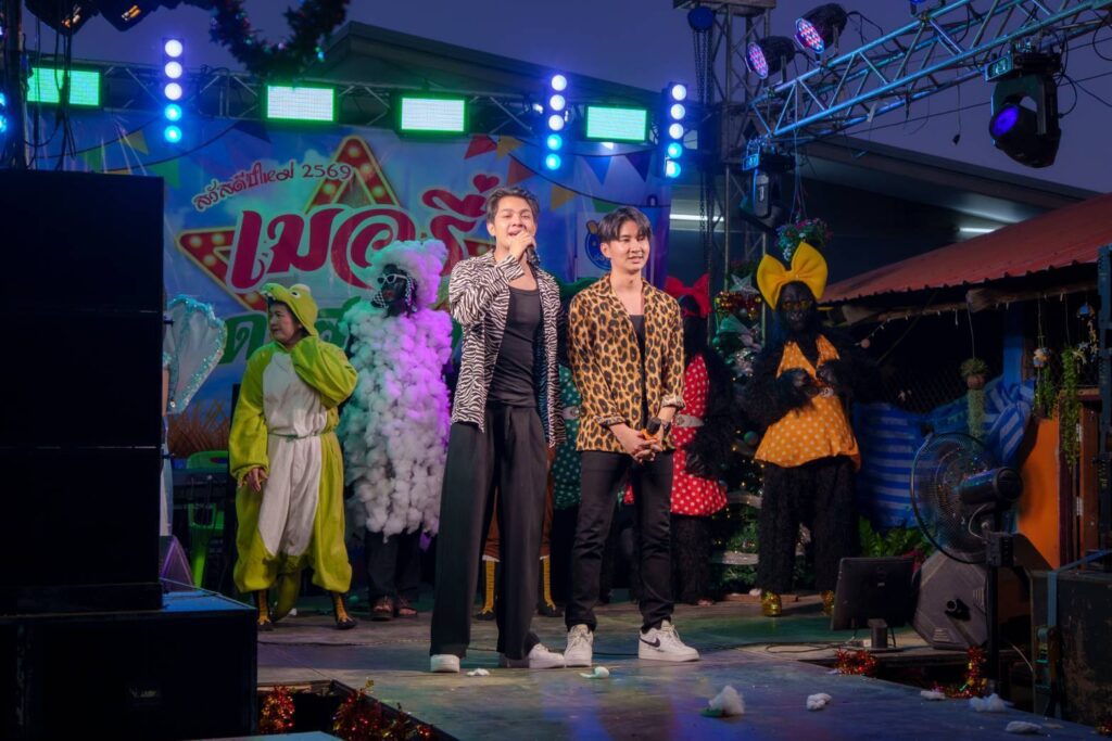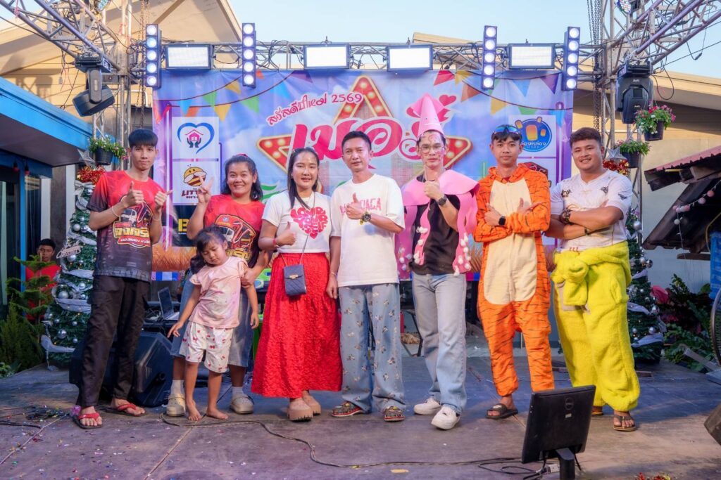 เมื่อคืนคริสต์มาสที่ผ่านมา บรรยากาศเต็มไปด้วยความสุขและรอยยิ้ม เมื่อ บรรจง จันทร์เทพ และ อังคาร ปะระทัง นำทีมพนักงานจาก The Little Bees Club, Onglong Music, รถแห่จงเจริญ, บ้านรักสตูดิโอ และบ้านรักบัญชี รวมกว่าร้อยชีวิต เดินทางไปจัดงานเลี้ยงปีใหม่ ณ บ้านแกเปะ อำเภอเมือง จังหวัดกาฬสินธุ์ เพื่อมอบความสุขและเป็นขวัญกำลังใจให้ทีมงาน