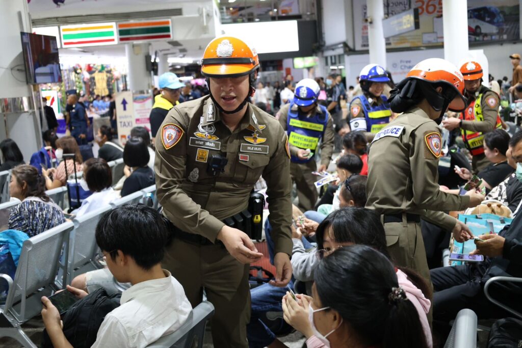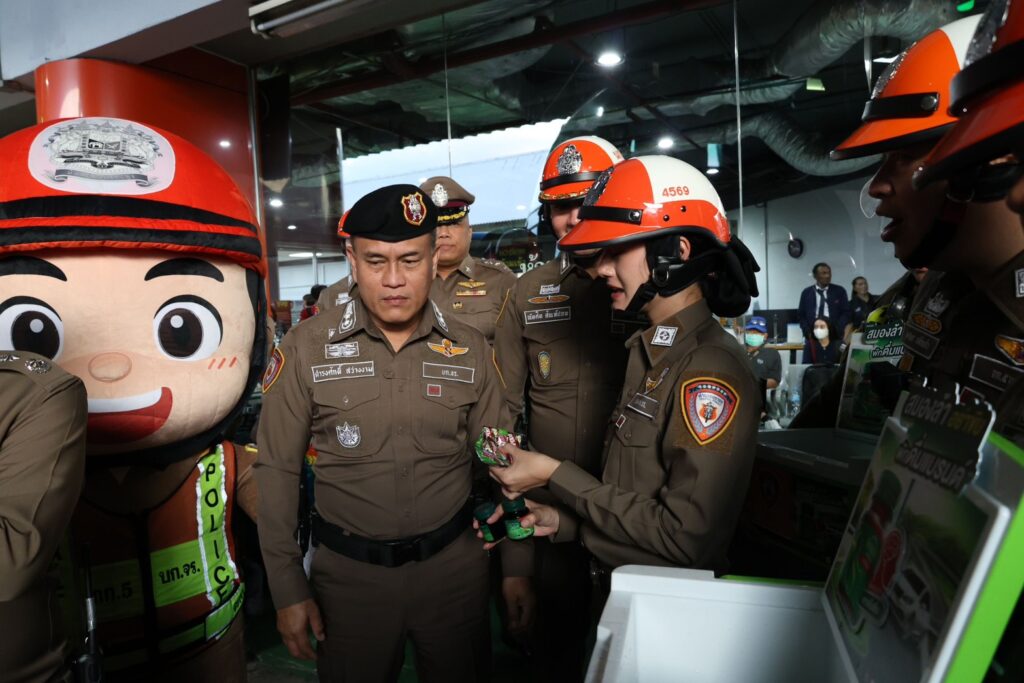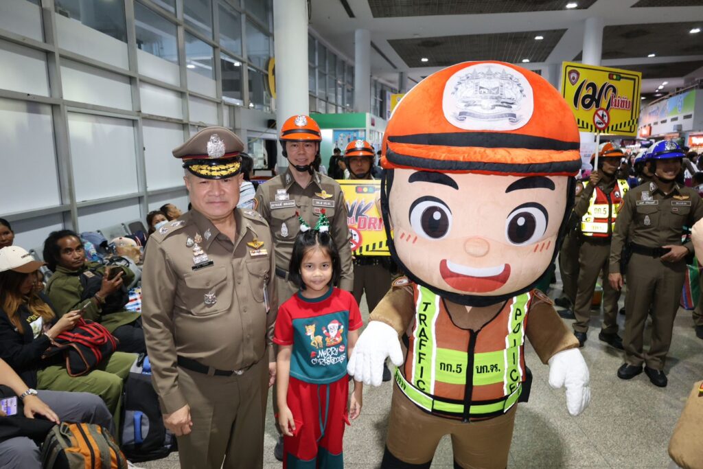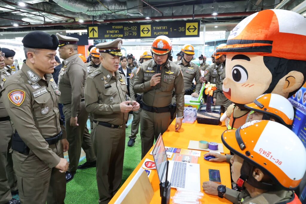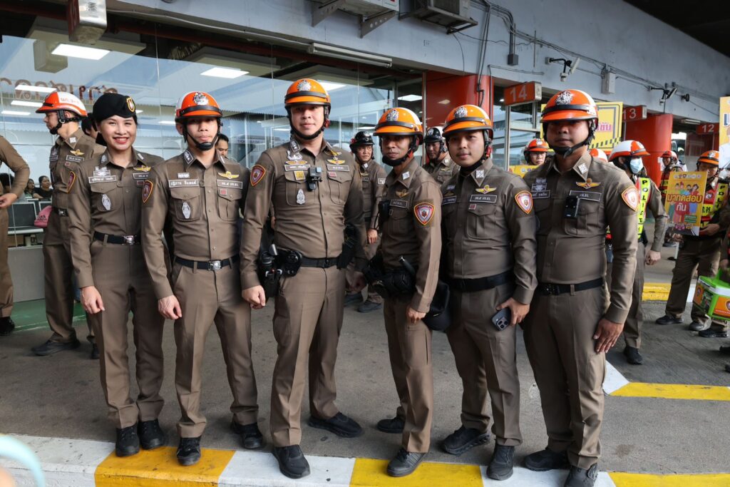 ผบก.จร.,พ.ต.อ.ฐิรวิทย์ บุษบัน รอง ผบก.จร.,พ.ต.อ.ณัทศิต สัณห์ปภพ ผกก.5 บก.จร.,พ.ต.ท.ทศพร กลีบแก้ว รอง ผกก.5 บก.จร.,พ.ต.อ.เรวัฎ นูมหันต์ ผกก.1 บก.จร.,พ.ต.ท.มนตรี ศรีวัฒนฤทธิ์ รอง ผกก.6 บก.จร. ปฏิบัติหน้าที่ตรวจความเรียบร้อยภายในสถานีขนส่งหมอชิต 2 พร้อมร่วมกิจกรรมรณรงค์ “เมาไม่ขับ” ให้กับผู้ขับขี่รถโดยสารสาธารณะ และแจกขนม ลูกอม แบรนด์ ให้กับประชาชนที่เดินทางกลับภูมิลำเนา