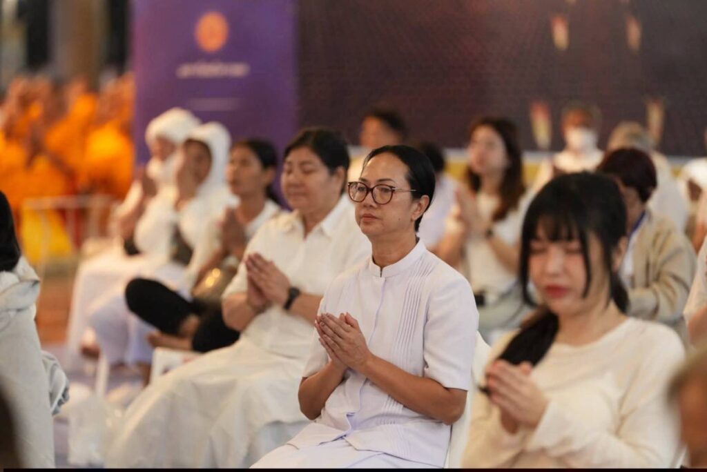 บรรยากาศในพิธีมีผู้คนมาร่วมงานเป็นจำนวนมาก เต็มไปด้วยความยิ้มแย้มแจ่มใส พุทธศาสนิกชนต่างแบ่งปันพื้นที่และสิ่งของในการใส่บาตร เป็นการเริ่มต้นศักราชใหม่ด้วยจิตใจที่ผ่องใส นอกจากนี้ยังได้ร่วมฉลองพระบวชใหม่ รุ่นบูชาธรรมมหาปูชนียาจารย์ ซึ่งในช่วงสาย พุทธศาสนิกชนได้ร่วมกันปฏิบัติธรรม ประกอบพิธีบูชาข้าวพระ และถวายภัตตาหารเป็นสังฆทาน