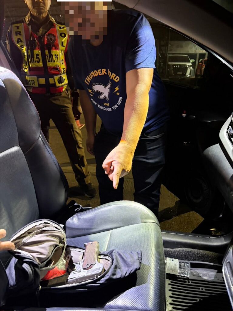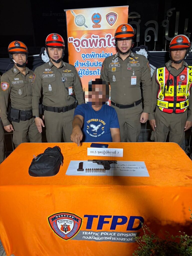 วันที่ 3 ม.ค.2569 เวลาประมาณ 01.15 น. ขณะที่เจ้าหน้าที่ตำรวจงานตรวจพิสูจน์ผู้ขับขี่ ชป.7 กก.5 บก.จร. ตั้งจุดตรวจวัดปริมาณแอลกอฮอล์และป้องกันปราบปรามอาชญากรรม บริเวณหน้าศูนย์วัฒนธรรม ถ.เทียมร่วมมิตร เขตห้วยขวาง กทม. อยู่นั้น พบผู้ขับขี่เป็นชาย ขับรถยนต์นั่งส่วนบุคคลไม่เกิน 7 คนเข้ามาในทางเดินรถจุดตรวจวัด เมื่อมาถึงจุดตรวจผู้ขับขี่แสดงอาการมีพิรุธต้องสงสัยคล้ายมีสิ่งของผิดกฎหมาย จึงได้เรียกให้หยุดเพื่อตรวจสอบและขอตรวจค้น