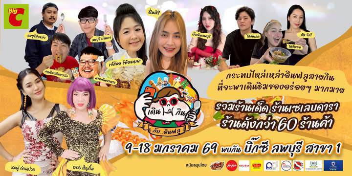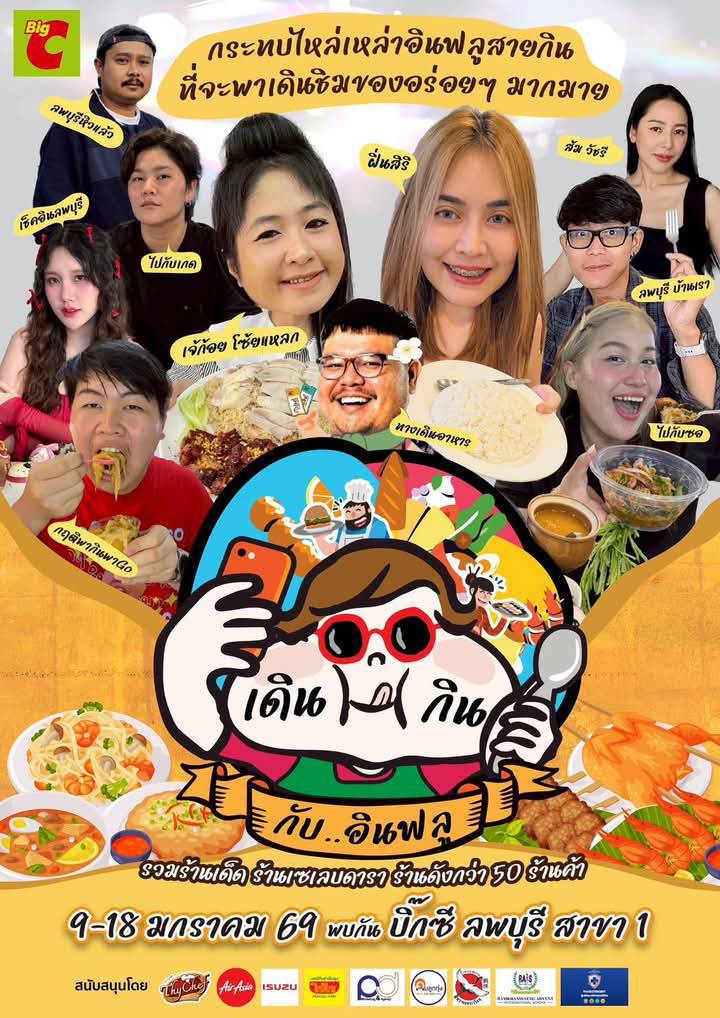 ชาวลพบุรีทุกท่านพร้อมมาช้อป ชิม ชิลกับพวกเราหรือยังครับ! มาเดินกินกับเหล่าอินฟลูชื่อดังทั่วฟ้าเมืองไทยและอินฟลูลพบุรี