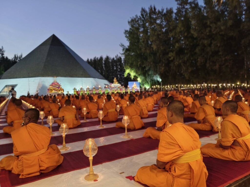 บรรยากาศภายในพิธี พระภาวนาธรรมวิเทศ ผู้ช่วยเจ้าอาวาสวัดพระธรรมกาย นำคณะสงฆ์ธรรมยาตรา 1,142 รูป พร้อมด้วยสาธุชน ร่วมเจริญสมาธิภาวนาและอธิษฐานจิต ณ อนุสรณ์สถานพระมงคลเทพมุนี อำเภอสองพี่น้อง จังหวัดสุพรรณบุรี โดยมีนายณัฐพงษ์ สงวนจิตร ผู้ว่าราชการจังหวัดสุพรรณบุรี เป็นประธานฝ่ายฆราวาส