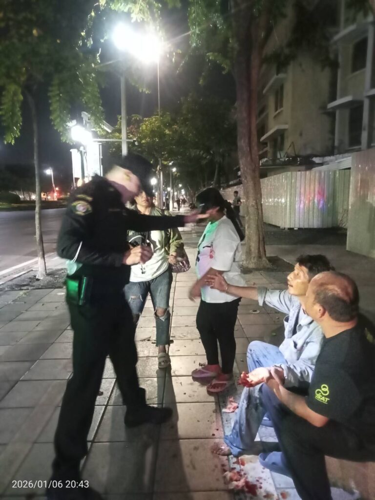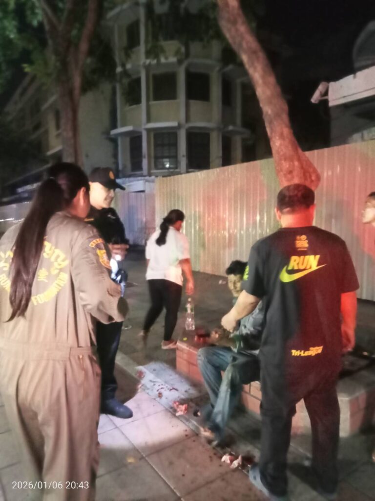 เบื้องต้นจากการลงพื้นที่ตรวจวันนี้จุดบริเวณบาทวิถีหน้าศึกษาภัณฑ์ เก่า ถนนราชดำเนินกลาง ขาเข้า พบเจอ วัยรุ่น มีอาการมึนเมา กำลังมีเรื่องทะเลาะวิวาท โหวกเหวกด่าทอเสียงดัง สายตรวจเทศกิจกรุงเทพมหานคร กำลังเดินเท้าตรวจอยู่จุดบริเวณดังกล่าว จึงเข้าทำการห้ามปรามและซักถาม ถึงสาเหตุแต่ วัยรุ่นคนดังกล่าวมีอาการมึนเมา พูดจาวกวนและนำอาวุธมีดปลายแหลมออกมา จนทำให้เพื่อน ผู้ก่อเหตุ ที่เข้ามาช่วยห้าม ถูกมีปลายแหลมแทง และ ต่อมา เทศกิจกรุงเทพมหานคร จึงทำการประสาน ตำรวจส่วนกลาง กดโทร 191 และประสานรถพยาบาล รถมูลนิธิร่วมกตัญญู เข้ามาตรวจสอบและช่วยเหลือผู้บาทเจ็บที่เกิดเหตุ ก่อนผลักดันออกนอกพื้นที่ในเวลาต่อมา โดยเหตุการณ์ทั่วผลการปฎิบัติงานเป็นไปด้วยความเรียบร้อย