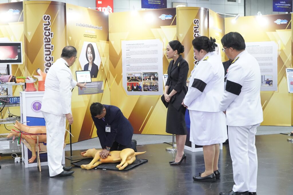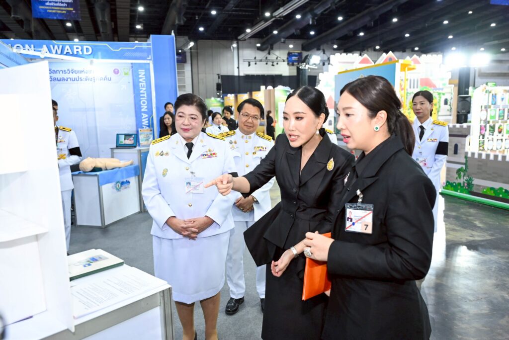 โดยปีนี้ จัดขึ้นภายใต้แนวคิด “ปลดล็อกประเทศไทยด้วยพลังของสิ่งประดิษฐ์และนวัตกรรม (Unlock Thailand – Power of Invention and Innovation)” เพื่อมุ่งเน้นการนำเสนอผลงานประดิษฐ์คิดค้นที่พร้อมต่อยอดสู่การใช้ประโยชน์ในทุกมิติ มีการจัดแสดงผลงานมากกว่า 1,000 ผลงาน อาทิ ผลงาน: สืบสานคุณค่า “ผ้าพื้นถิ่นยะรังวิถี” สู่ผลิตภัณฑ์เครื่องแต่งกายมุสลิมเพื่อเพิ่มมูลค่าเศรษฐกิจชุมชน ผลงานของ ผู้ช่วยศาสตราจารย์ ดร.ปรัชญา บินหมัดหนี คณะศิลปศาสตร์และสังคมศาสตร์ มหาวิทยาลัยฟาฏอนี จ.ปัตตานี เป็นผลงานที่ได้รับรางวัล: รางวัลผลงานวิจัย ระดับดี สาขาสังคมวิทยา “ผ้าพื้นถิ่นยะรังวิถี” เป็นการสร้างอัตลักษณ์ทางวัฒนธรรมเพื่อสร้าง เรื่องราวนําสู่การประยุกต์ลวดลายบนผืนผ้าเพื่อพัฒนาผลิตภัณฑ์ใหม่บนฐานมรดกภูมิปัญญาทางวัฒนธรรม นอกจากนี้ยังสร้างแพลตฟอร์มการขายบนตลาดดิจิทัลเพื่อส่งเสริมการขายผลิตภัณฑ์ที่ใช้ทุนทางวัฒนธรรมและภูมิปัญญา กลุ่มตัวอย่างที่ใช้ในการวิจัย ได้แก่ กลุ่มผู้ประกอบการวัฒนธรรม ประเภทเครื่องแต่งกายมุสลิม จำนวน 12 กลุ่ม จากชุมชนจำนวน 10 ชุมชน และผู้บริโภคผลิตภัณฑ์ อ.ยะรัง จ.ปัตตานี ผลงาน: หุ่นฝึกฉีดยาเข้ากล้ามเนื้อทารกแรกเกิดด้วยระบบเซนเซอร์ไร้สาย ผลงานของคณะผู้ประดิษฐ์: ดร.มนต์อมร ปรีชารัตน์ และคณะ จากสถาบันนวัตกรรมการเรียนรู้ มหาวิทยาลัยมหิดล ได้รับรางวัลผลงานประดิษฐ์คิดค้น ระดับดีมาก สาขาการศึกษา “หุ่นฝึกฉีดยาเข้ากล้ามเนื้อทารกแรกเกิดด้วยระบบเซนเซอร์ไร้สาย” เป็นนวัตกรรมที่ออกแบบเฉพาะสำหรับฝึกทักษะการฉีดยาอย่างถูกต้องในกลุ่มทารกแรกเกิด โดยผสมผสานหุ่นจำลองเสมือนจริงกับระบบเซนเซอร์ตรวจจับตำแหน่ง ความลึก องศา และระยะเวลาในการแทงเข็ม พร้อมเชื่อมต่อแพลตฟอร์มดิจิทัลสำหรับบันทึกผลและวิเคราะห์พฤติกรรมของผู้เรียนแบบเรียลไทม์ หุ่นนี้ช่วยยกระดับการเรียนรู้แบบรายบุคคลและสามารถใช้ประเมินสมรรถนะได้จริง เหมาะสำหรับใช้ในสถาบันการศึกษาด้านสุขภาพ โรงพยาบาล และการฝึกอบรมบุคลากรทางการแพทย์ทั่วประเทศ ผลงานผลิตภัณฑ์เพื่อส่งเสริมสุขภาวะสำหรับผู้สูงอายุ Nifty Elderly จุฬาลงกรณ์มหาวิทยาลัย ผลงานนวัตกรรมวัสดุยางธรรมชาติเทอร์โมพลาสติก: เครื่องมือขับเคลื่อนภูมิปัญญาจักสานสู่สังคมยั่งยืน มหาวิทยาลัยสงขลานครินทร์ ผลงานระบบการตรวจวัดการระบาย PM1.0, PM2.5 และ PM10 จากปล่องโรงงานอุตสาหกรรมแบบต่อเนื่องออนไลน์ด้วยเวลาจริง มหาวิทยาลัยเทคโนโลยีราชมงคลล้านนา ผลงานแซคคาไรซ์: ไซรัปจากกากรำข้าว สถาบันเทคโนโลยีจิตรลดาและมหาวิทยาลัยราชภัฏพระนครศรีอย