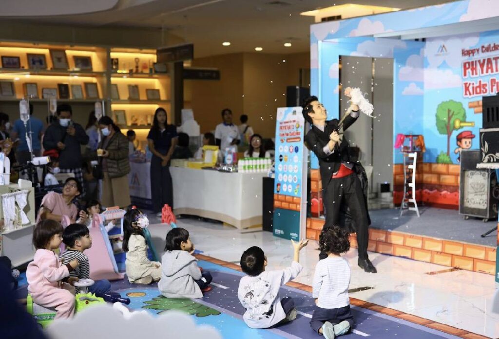 ภายในงานออกแบบกิจกรรมให้สอดคล้องกับพัฒนาการตามช่วงวัยเปิดโอกาสให้เด็กๆได้เรียนรู้ผ่านการเล่นเสริมทักษะและความคิดสร้างสรรค์ อาทิ ลานรถขาไถ,ลานสไลด์เดอร์และเข้าร่วมฐานกิจกรรมเล่นเกมสะสมแต้มตามล่าของรางวัลกันอย่างสนุกสนาน เช่น ฐานจับคู่ภาพให้ถูกต้อง,ฐานปาถุงถั่วสร้างทักษะความแม่นยำ,ฐานตักไข่ตามจำนวนตัวเลข และฐานระบายสีตามภาพ เป็นต้น นอกจากนี้ ยังมีการแสดงโชว์มายากลสุดพิเศษ โบโซ่ตัวตลกมาแจกลูกโป่ง ซึ่งได้รับความสนใจจากเด็กๆเป็นอย่างมาก อีกทั้งยังจัดกิจกรรมส่งเสริมสุขภาพสำหรับเด็ก ได้แก่ การสอนการปฐมพยาบาลเบื้องต้น (CPR) และสอนการแปรงฟันอย่างถูกวิธี จากทีมพยาบาลวิชาชีพ เพื่อให้ได้เรียนรู้ควบคู่ไปกับความสนุก เด็กๆที่เข้าร่วมกิจกรรมต่างมีความสุขและรอยยิ้มพร้อมรับขนมและของรางวัลมากมายจากผู้ร่วมสนับสนุนซึ่งสร้างความประทับใจให้กับทั้งเด็กและผู้ปกครองเป็นอย่างยิ่ง พร้อมกันนี้ โรงพยาบาลพญาไท 3 ยังได้ส่งต่อความสุขไปยัง Phyathai 3 Social Club ที่ตลาดฟู้ดวิลล่าราชพฤกษ์ ด้วยการแจกขนมและของขวัญให้กับเด็กๆ ซึ่งได้รับความสนใจและการตอบรับเป็นอย่างดีเช่นกัน