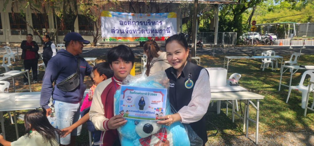 เมื่อวันที่ 10 มกราคม 2569 2 สจ. อำเภอคลองหลวง ร่วมสืบสานความสุขในวันเด็กแห่งชาติประจำปี 2569 ในงาน “รักชาติไทย ใส่ใจโลก” ครั้งที่ 8 ณ ลานข้างอาคารปลูกศรัทธา วัดพระธรรมกาย อำเภอคลองหลวง จังหวัดปทุมธานี โดยมีเยาวชนและครอบครัวในพื้นที่เข้าร่วมงานอย่างเนืองแน่นกว่า 10,000 คน ภายในงาน นางสาวพรปริญญา ศรีจันทร์ สมาชิกสภา อบจ.ปทุมธานี (เขต 5 อ.คลองหลวง) และ นายสัญชาติ คุระนันท์ สมาชิกสภา อบจ.ปทุมธานี (เขต 7 อ.คลองหลวง) ได้เป็นตัวแทน อบจ.ปทุมธานี ในการจัดบูธกิจกรรมเพื่อมอบความสุขให้กับเด็กๆ โดยมีการเตรียมของขวัญและไฮไลท์พิเศษมากมาย อาทิ ตุ๊กตาขนาดใหญ่ จำนวนมากที่นำมามอบเป็นรางวัลให้แก่เด็กๆ ไอศกรีมแจกฟรีตลอดกิจกรรม