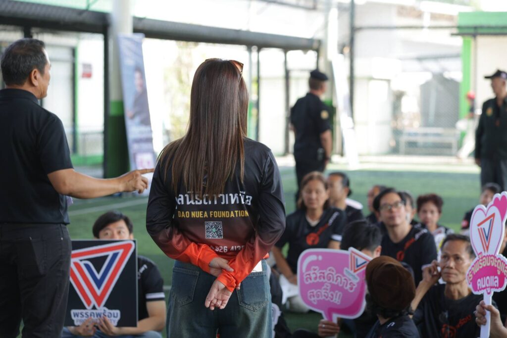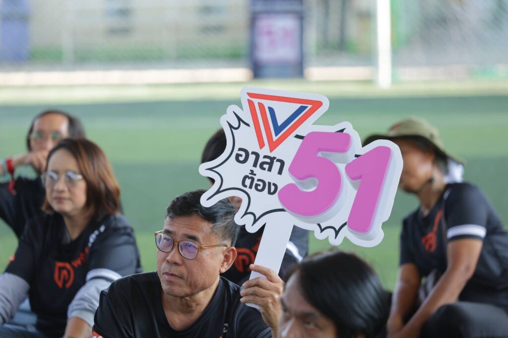 ส่งต่อลูกฟุตบอลเชิงสัญลักษณ์เพื่อสื่อสื่อถึงการนำปัญหาจากหน้างาน เข้าสู่ระบบสวัสดิการที่พรรคเตรียมพร้อมไว้ให้ผ่าน