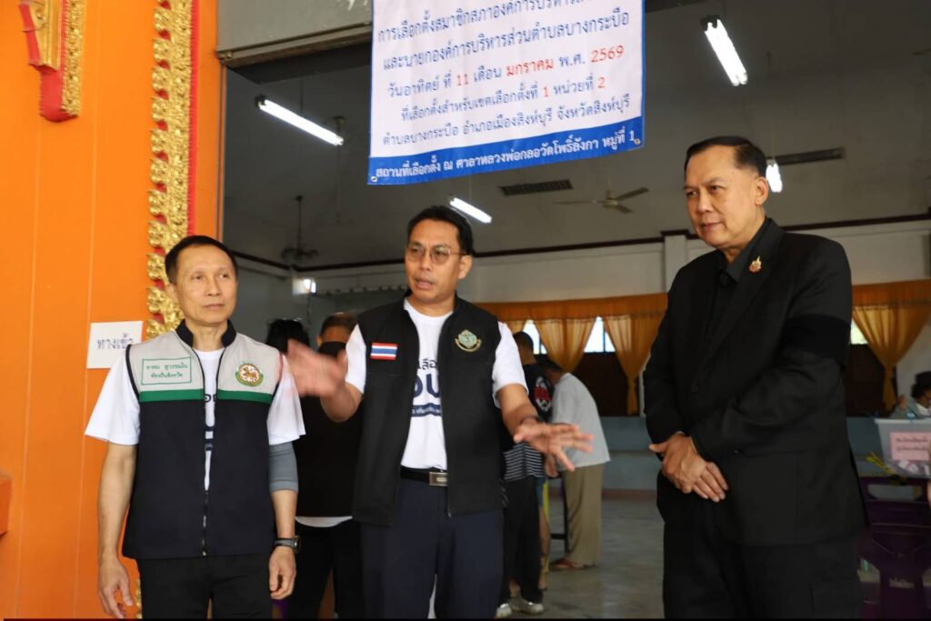 วันที่ 11 มกราคม 2569 (เวลา 09.00 น.)นายวราดิศร อ่อนนุช ผู้ว่าราชการจังหวัดสิงห์บุรี พร้อมด้วย นายคณาธิป แสงโคตร์ ผู้อำนวยการการเลือกตั้งประจำจังหวัดสิงห์บุรี,นายอาคม สุวรรณโณ ท้องถิ่นจังหวัดสิงห์บุรี และคณะเจ้าหน้าที่ที่เกี่ยวข้อง ลงพื้นที่ตรวจเยี่ยมการจัดการเลือกตั้งสมาชิกสภาและนายกองค์การบริหารส่วนตำบล (อบต.) ในพื้นที่ตำบลบางกระบือ อำเภอเมือง จังหวัดสิงห์บุรี เพื่อติดตามความเรียบร้อยและอำนวยความสะดวกให้แก่ประชาชนผู้มาใช้สิทธิ