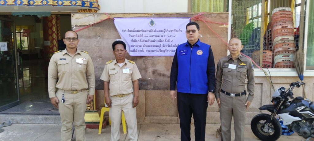 นายฐิติพงศ์ วิชัยสาร นายอำเภอพรหมบุรี ลงพื้นที่ตรวจเยี่ยมและสังเกตการณ์การเลือกตั้งนายกองค์การบริหารส่วนตำบล (อบต.) และสมาชิกสภาองค์การบริหารส่วนตำบล ในพื้นที่อำเภอพรหมบุรี จังหวัดสิงห์บุรี เพื่อติดตามความเรียบร้อยและให้กำลังใจเจ้าหน้าที่ผู้ปฏิบัติงาน ดังนี้