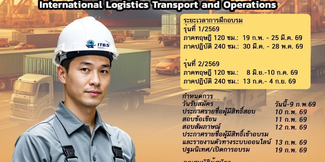 สำหรับกำหนดการฝึกอบรมมีทั้งหมด 2 รุ่น โดยรุ่นที่ 1/2569 ภาคทฤษฎี 19 ก.พ.–25 มี.ค.2569 ภาคปฏิบัติ 30 มี.ค.–28 พ.ค.2569 รุ่นที่ 2/2569 ภาคทฤษฎี 8 มิ.ย.–10 ก.ค.2569 ภาคปฏิบัติ 13 ก.ค.–4 ก.ย.2569 ทั้ง 2 รุ่น อบรมภาคทฤษฎี 120 ชั่วโมง ภาคปฏิบัติ 240 ชั่วโมง ผู้สมัครต้องมีสัญชาติไทย อายุไม่เกิน 30 ปี เป็นผู้ว่างงาน เพศชาย/หญิง สำเร็จการศึกษาระดับ ปวช. ปวส. สามารถเข้าอบรมได้ครบตามกำหนดโครงการ วันจันทร์–วันศุกร์ อบรม Onsite ที่ โรงเรียนธุรกิจการขนส่งและการค้าระหว่างประเทศ (ITBS) เขตบางนา กรุงเทพมหานคร คัดเลือกโดยการสอบข้อเขียน (ปรนัย) และสัมภาษณ์รูปแบบ Online ผ่านโปรแกรม Zoom ประกาศรายชื่อผู้มีสิทธิ์สอบ วันที่ 10 กุมภาพันธ์ 2569 สอบข้อเขียน 11 กุมภาพันธ์ 2569 สอบสัมภาษณ์ 12 กุมภาพันธ์ 2569 ประกาศรายชื่อผู้มีสิทธิ์เข้าอบรม และรายงานตัวทางระบบออนไลน์ 13 กุมภาพันธ์ 2569 ปฐมนิเทศ/เปิดการอบรม 19 กุมภาพันธ์ 2569 โครงการนี้ถือเป็นโอกาสที่ดีสำหรับเยาวชน เนื่องจากผู้ผ่านการอบรมจะได้รับโอกาสเข้าทำงานจริง เป็นการปั้นบุคลากรคุณภาพเพื่อเข้าสู่ตลาดแรงงานโดยตรง สมัครได้ทาง https://forms.gle/x17SyPaJEsrCrwys7 (ไม่มีค่าใช้จ่าย)