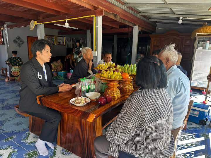 ลงพื้นที่ไปแจกแผ่นพับแนะนำตัวและเดินเคาะประตูบ้านพบปะเยี่ยมเยียนผู้เฒ่าผู้แก่ผู้สูงอายุ ให้การต้อนรับอย่างอบอุ่น