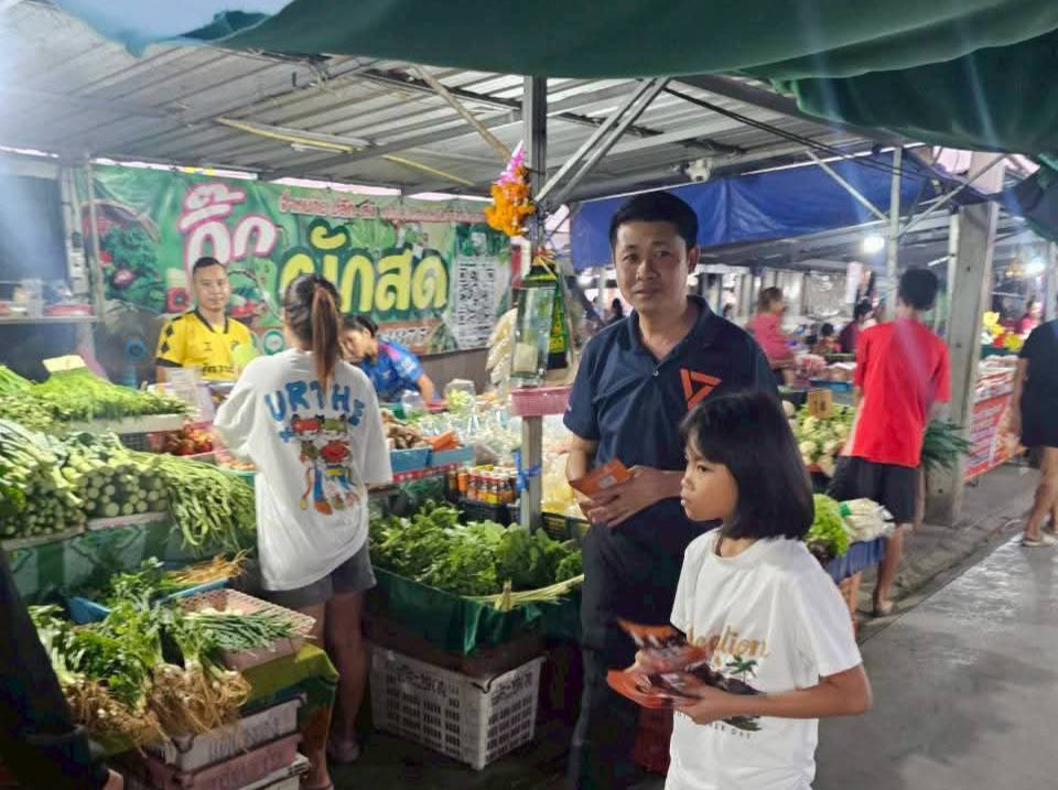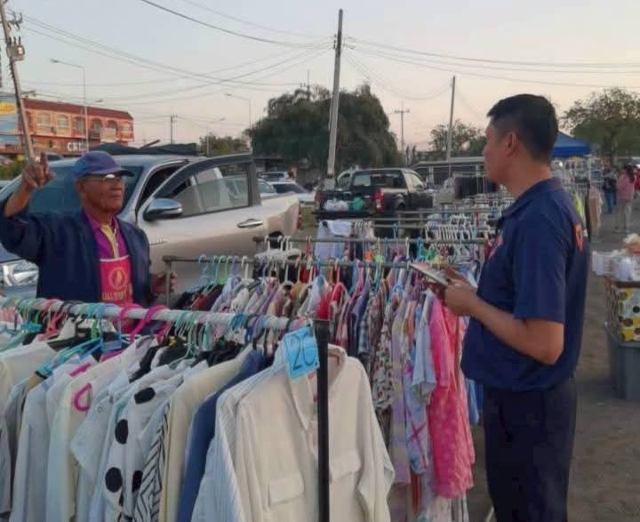 ลงพื้นที่แจกบัตรแนะนำตัวและขออ้อนพ่อค้าแม่ค้าขอโอกาสไปทำงานต่อและจะพัฒนาจังหวัดลพบุรีให้เจริญ