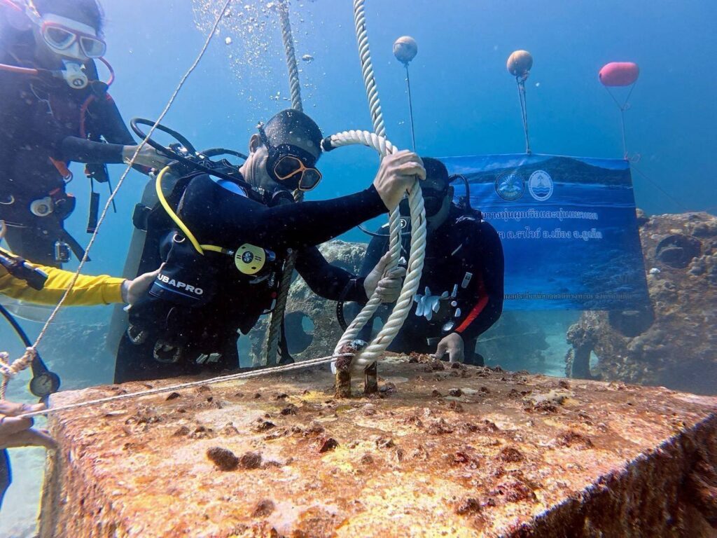 จัดกิจกรรมวางทุ่นผูกเรือ และทุ่นกำหนดเขตวางไข่ปลา เพื่อป้องกันการบุกรุกและลดผลกระทบต่อแนวปะการังน้ำตื้น ที่ผ่านมา คณะทำงานได้ดำเนินการวางทุ่นผูกเรือมาตั้งแต่เดือน พฤศจิกายน พุทธศักราช ๒๕๖๘ สามารถวางทุ่นผูกเรือได้รวมทั้งสิ้น ๓๕ ทุ่น และวางทุ่นกำหนดเขตวางไข่ปลา จำนวน ๓ จุด