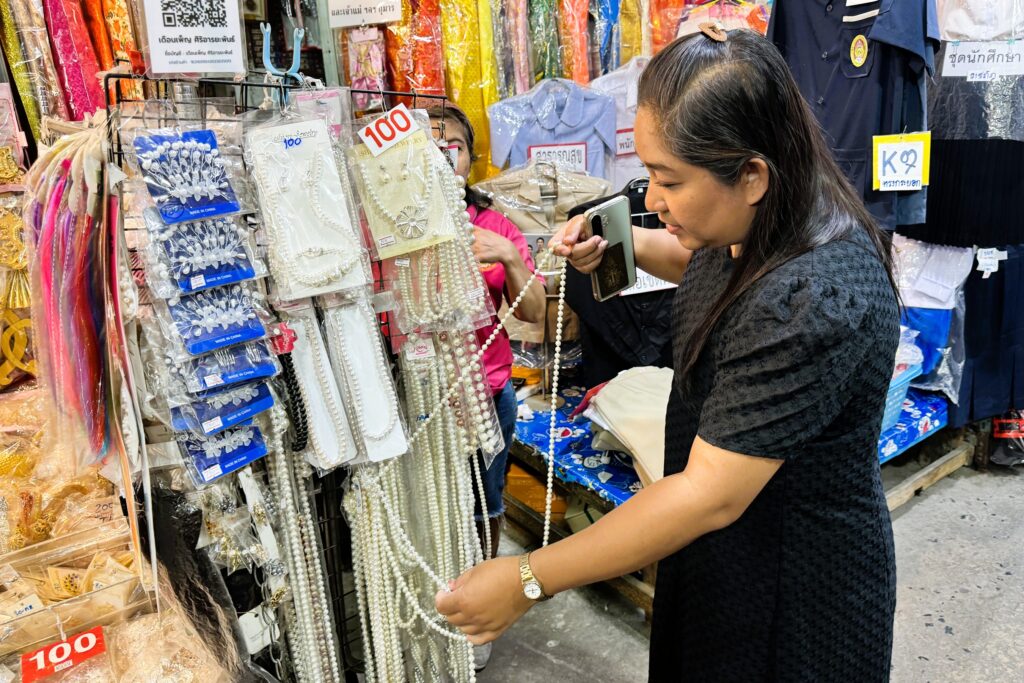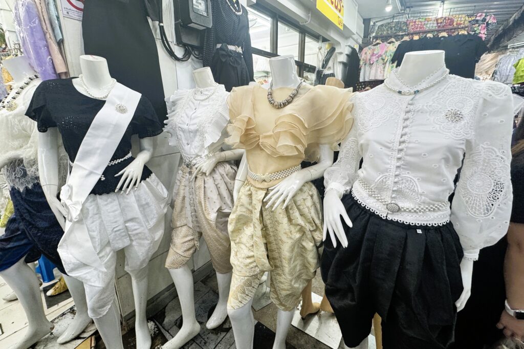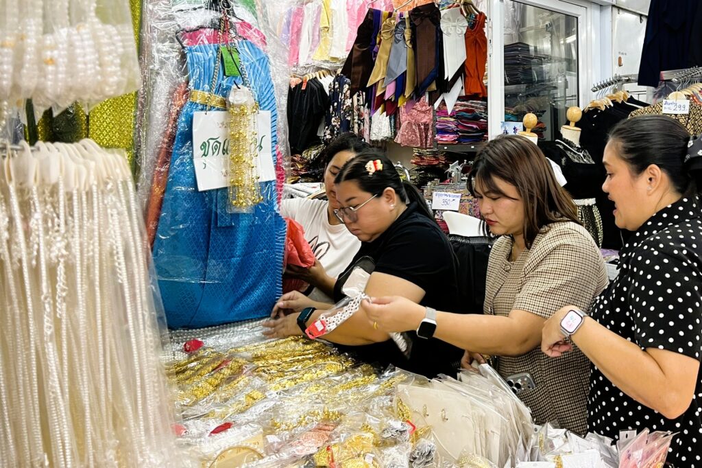 ซึ่งจากการสำรวจบริเวณย่านธุรกิจและตลาดในตัวเมืองลพบุรี พบว่าร้านขายชุดไทยหลายแห่งมีลูกค้าเข้ามาเลือกซื้อกันอย่างเนือง โดยในปีนี้ “โจงกระเบน และสไบ โทนสีดำ โทนสีสุภาพ 25 สี รวมถึงเครื่องประดับย้อนยุคยังคงได้รับความนิยมสูงสุด เจ้าของร้านจำหน่ายชุดไทยรายหนึ่งเปิดเผยว่า “ปีนี้คึกคักกว่าปีที่ผ่านมามาก มีทั้งกลุ่มลูกค้าประจำ และกลุ่มวัยรุ่นที่มาหาซื้อชุดสำเร็จรูปเพื่อไปถ่ายภาพเช็คอินตามโบราณสถาน ทำให้ยอดขายเพิ่มขึ้นหลายเท่าตัวโดยราคาจากการสอบถามเบ้องต้นพบว่า โจงกระเบนราคาเริ่มต้นที่ 250 – 450 บาท สไบเริ่มต้นที่ 100 – 200 บาท เสื้อผ้าพื้น เริ่มต้นที่ 80-150 บาท และเครื่องประดับต่าง ๆ เริ่มต้นที่ 50 บาท ”