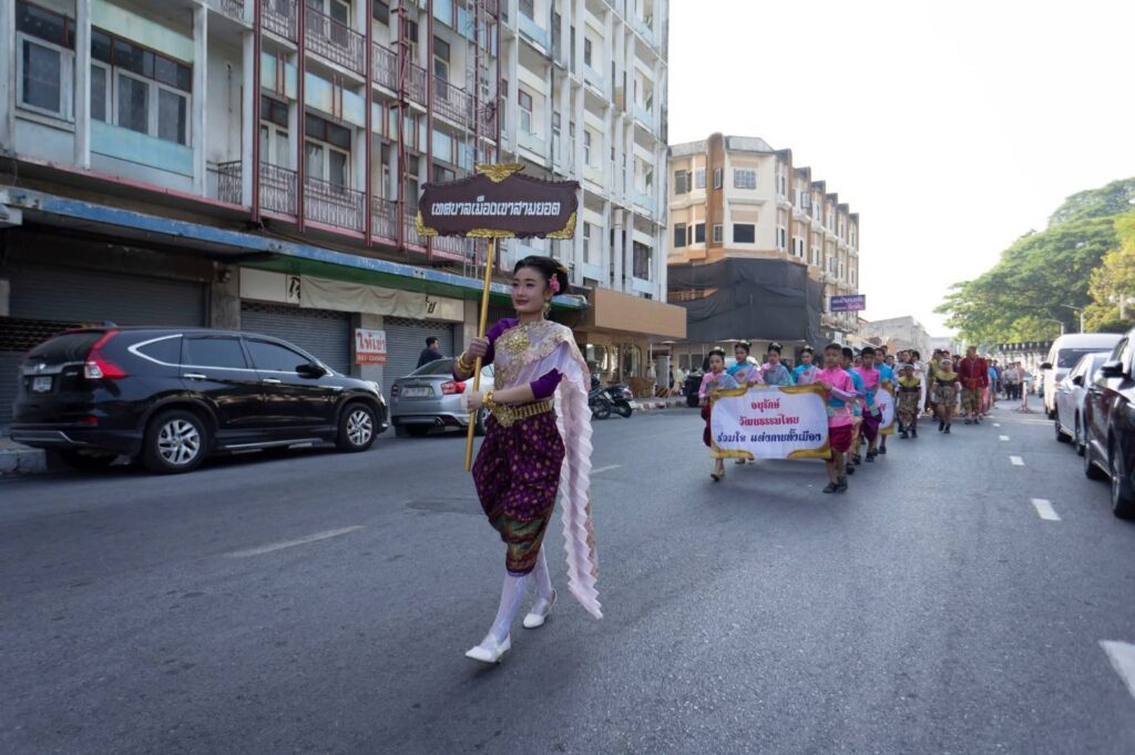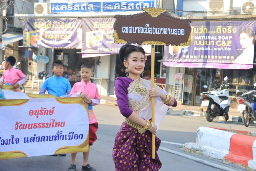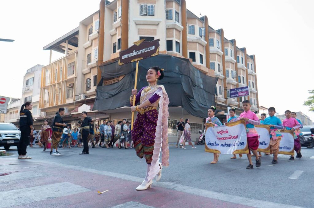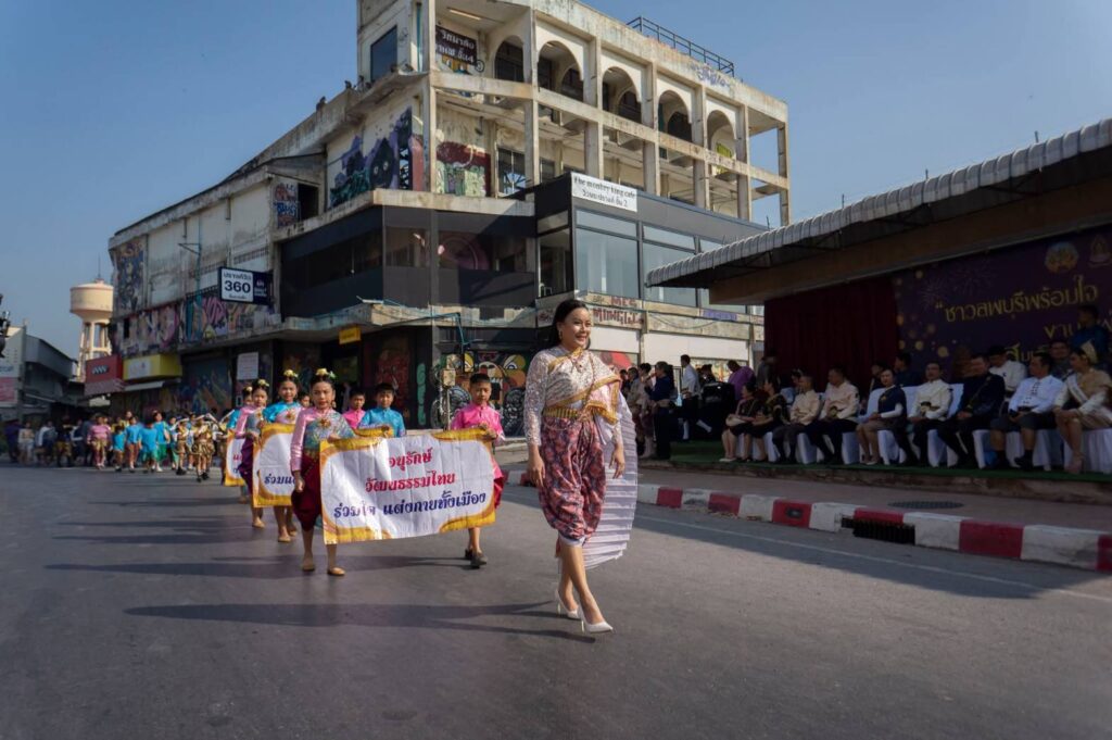 นายกเทศมนตรีเมืองเขาสามยอด เข้าร่วมกิจกรรมเดินรณรงค์ “ชาวลพบุรี พร้อมใจแต่งไทยทั้งเมือง” ในงานแผ่นดินสมเด็จพระนารายณ์มหาราช ประจำปี 2569