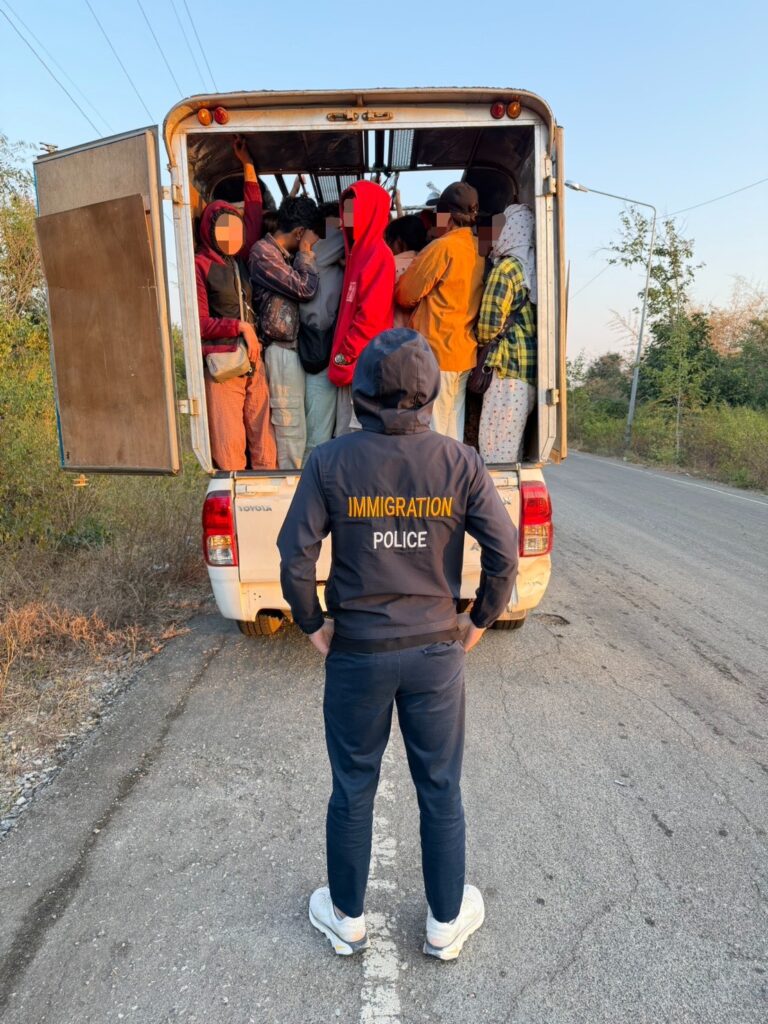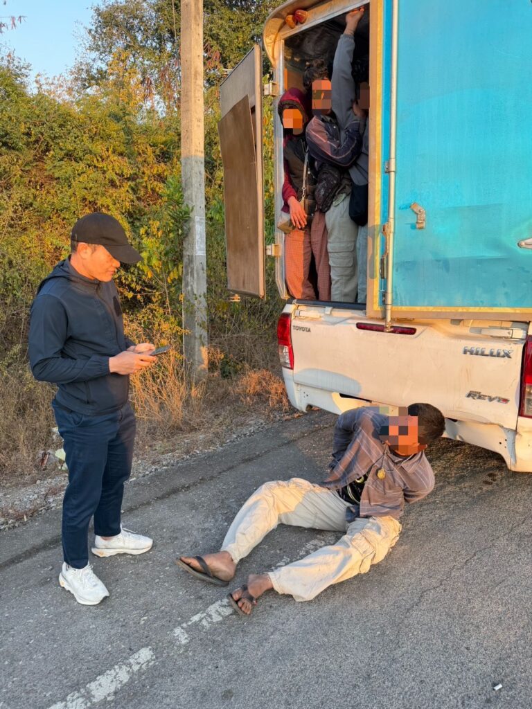 เจ้าหน้าที่สืบสวนกองกำกับการ 2 บก.สส.สตม. ได้รับแจ้งเบาะแสว่ามีคนต่างด้าวลักลอบเข้าเมืองทางด้านชายแดนจังหวัดกาญจนบุรี จึงได้ทำการสืบสวนจนพิสูจน์ทราบเส้นทางการลักลอบพาคนต่างด้าวเข้ามาในประเทศ และได้ลงพื้นที่วางกำลังเพื่อจับกุม ในวันที่ 13 มกราคม 2569 เวลาประมาณ 07.30 น. เจ้าหน้าที่พบรถต้องสงสัยเป็นลักษณะรถกระบะตู้ทึบ วิ่งด้วยความเร็วสูงเข้าตัวเมือง จึงได้ติดตามไปอย่างกระชั้นชิด และได้แสดงตัวเข้าตรวจสอบ ผลการตรวจสอบพบว่าคนขับคือ นายสมชาย สัญชาติเมียนมา บรรทุกแรงงานต่างด้าวสัญชาติเมียนมา ชายหญิง รวมทั้งสิ้น 51 ราย จึงได้แจ้งข้อกล่าวหาและทำการจับกุม สถานที่จับกุม ริมถนนแสงชูโต ต.ลาดหญ้า อ.เมืองกาญจนบุรี จ.กาญจนบุรี โดยกล่าวหาว่าผู้ต้องหาที่ 1 (คนขับรถ) “โดยรู้ว่าเป็นคนต่างด้าวเข้ามาในราชอาณาจักรโดยฝ่าฝืน พ.ร.บ.คนเข้าเมืองฯ ให้เข้าพักอาศัย ซ่อนเร้น หรือช่วยเหลือด้วยประการใดๆ เพื่อให้คนต่างด้าวนั้นพ้นจากการจับกุม” (มาตรา 64 แห่ง พ.ร.บ.คนเข้าเมือง พ.ศ.2522) ผู้ต้องหาที่ 2 – 52 “เป็นบุคคลต่างด้าวอยู่ในราชอาณาจักรโดยไม่ได้รับอนุญาต” นำส่ง สภ.ลาดหญ้า ดำเนินคดี และจะได้สืบสวนขยายผลถึงผู้ร่วมขบวนการต่อไป