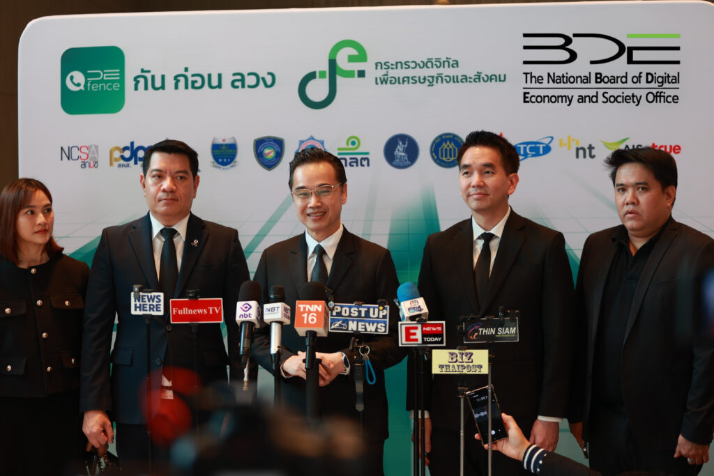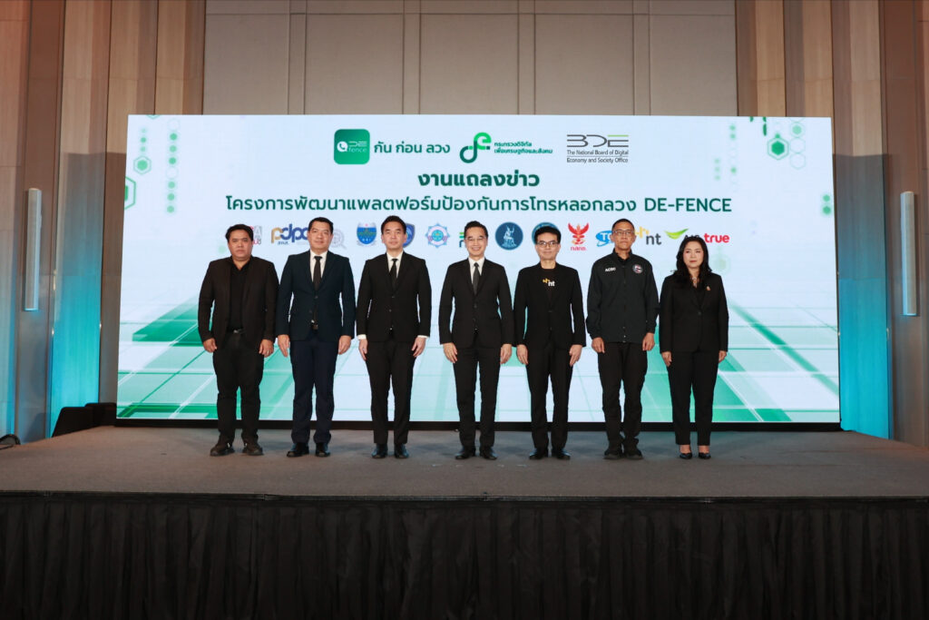 วันนี้ (15 มกราคม 2569) นายเวทางค์ พ่วงทรัพย์ เลขาธิการคณะกรรมการดิจิทัลเพื่อเศรษฐกิจและสังคมแห่งชาติ (BDE) และโฆษกกระทรวงดิจิทัลเพื่อเศรษฐกิจและสังคม (DE) ฝ่ายข้าราชการประจำ เป็นประธานงานแถลงข่าว “เปิดตัวแอปพลิเคชันป้องกันการโทรหลอกลวง” (DE-FENCE) ภายใต้โครงการพัฒนาแพลตฟอร์มป้องกันการโทรหลอกลวง โดยสำนักงานปลัดกระทรวงดิจิทัลเพื่อเศรษฐกิจและสังคม และสำนักงานคณะกรรมการดิจิทัลเพื่อเศรษฐกิจและสังคมแห่งชาติ บูรณาการความร่วมมือจากหน่วยงานที่เกี่ยวข้อง ประกอบด้วย สำนักงานตำรวจแห่งชาติ สำนักงานคณะกรรมการกิจการกระจายเสียง กิจการโทรทัศน์ และกิจการโทรคมนาคมแห่งชาติ (กสทช.) สมาคมโทรคมนาคมแห่งประเทศไทยในพระบรมราชูปถัมภ์ ธนาคารแห่งประเทศไทย สมาคมธนาคารไทยสำนักงานคณะกรรมการป้องกันและปราบปรามการฟอกเงิน สำนักงานคณะกรรมการกำกับหลักทรัพย์และตลาดหลักทรัพย์กรมสอบสวนคดีพิเศษ กองบัญชาการตำรวจสืบสวนสอบสวนอาชญากรรมทางเทคโนโลยี สำนักงานคณะกรรมการการรักษาความมั่นคงปลอดภัยไซเบอร์แห่งชาติ (สกมช.) สำนักงานคณะกรรมการคุ้มครองข้อมูลส่วนบุคคล (สคส.) บริษัท โทรคมนาคมแห่งชาติ จำกัด (มหาชน) บริษัท แอดวานซ์ ไวร์เลส เน็ทเวอร์ค จำกัด และบริษัท ทรู มูฟ เอช ยูนิเวอร์แซล คอมมิวนิเคชั่น จำกัด จัดขึ้น ณ โรงแรมอัศวิน แกรนด์ คอนเวนชั่น กรุงเทพฯ