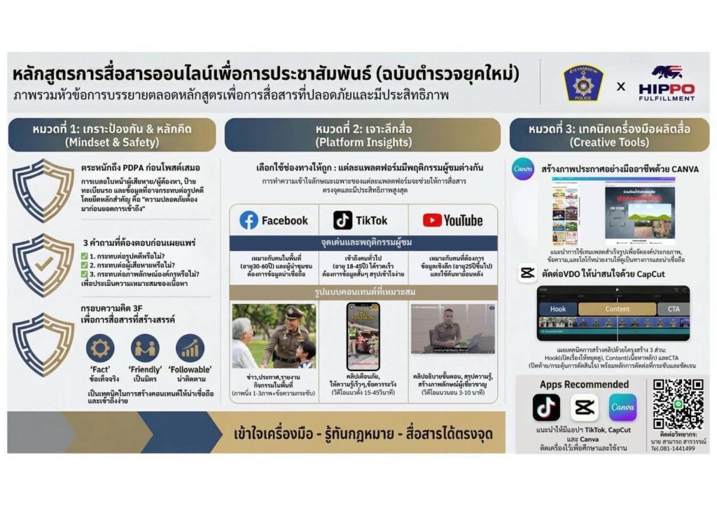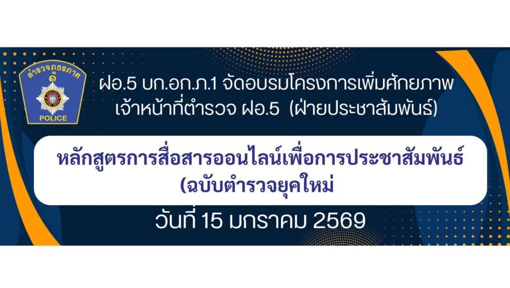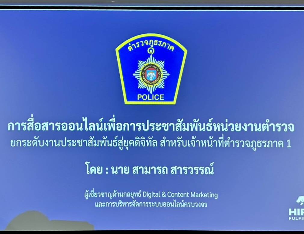 พล.ต.ต.ภัคพงศ์ สายอุบล ผบก.อก.ภ.1 ประธานพิธีเปิดโครงการอบรมเพิ่มศักยภาพเจ้าหน้าที่ตำรวจฝ่ายอำนวยการ 5 (ฝ่ายประชาสัมพันธ์) โดยได้รับเกียรติจาก นายสามารถ สารวรรณ์ ผู้เชี่ยวชาญด้านกลยุทธ์ Digital & Content Marketing และการบริหารจัดการระบบออนไลน์ครบวงจร และคณะฯ เป็นวิทยากร
