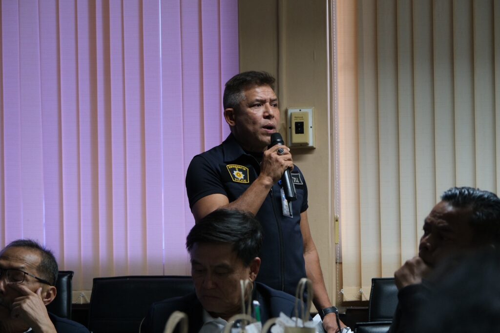ต่อจากนั้น พลเอก สวัสดิ์ ทัศนา ประธานกรรมาธิการ และคณะเดินทาง รับฟังบรรยายสรุป และแลกเปลี่ยนความเห็นเกี่ยวกับ การเฝ้าตรวจ การคัดกรองบุคคลที่ก่อคดีอาญาหรือคดีความมั่นคงหรือก่ออาชญากรรมข้ามชาติ โดยใช้เทคโนโลยีเข้ามาช่วยดำเนินการ เช่น การใช้กล้อง CCTV การใช้โปรแกรมตรวจจับใบหน้าอัตโนมัติ ทั้งในพื้นที่ด่านตรวจคนเข้าเมือง ด่านศุลกากร และพื้นที่สาธารณะของอำเภอเบตง ดังนี้