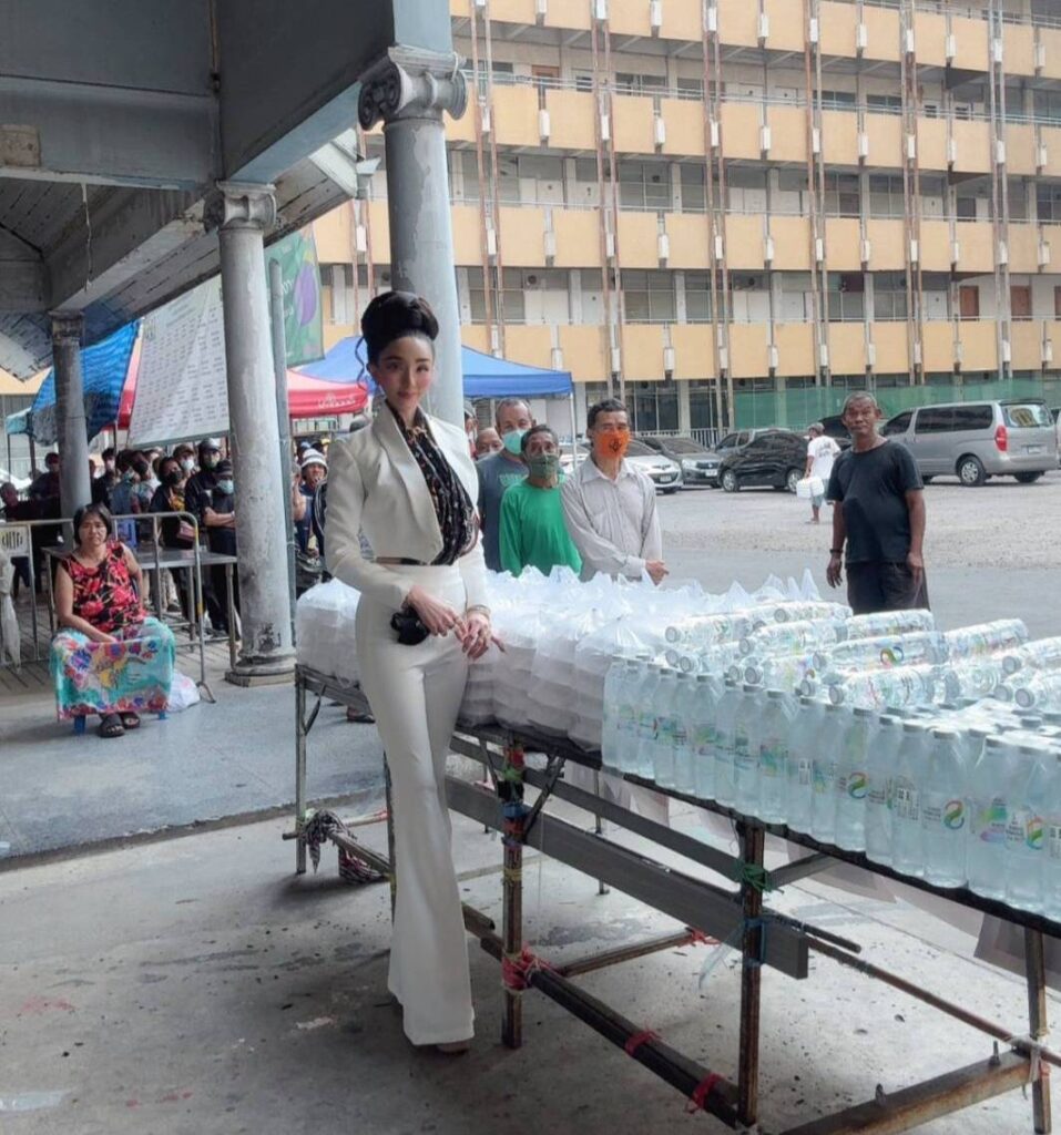 ช่วงเวลาที่เธออยู่ต่างประเทศ เธอเห็นวิถีชีวิตคนข้างถนน ทำให้นึกถึง “คนไร้บ้าน” ในประเทศไทย หลังจากเสร็จภารกิจ เธอบินกลับไทยในช่วงต้นปีใหม่พอดี และตั้งใจที่จะแจกข้าวกล่องให้กับ “คนไร้บ้าน” ถึง 400 กล่อง เพื่อเป็นของขวัญวันปีใหม่ด้วย