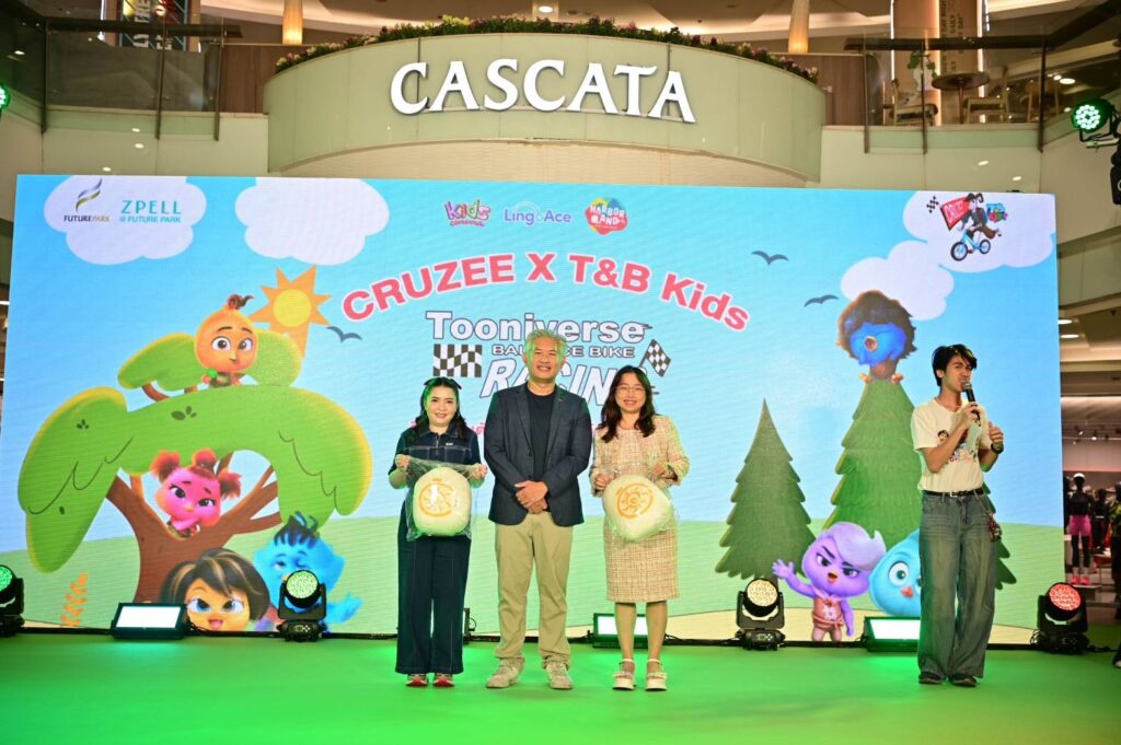 ประสบความสำเร็จอย่างงดงามสำหรับกิจกรรม “Cruzee x T&B Kids Tooniverse Balance Bike Racing 2026” ศึกนักปั่นตัวน้อยองค์รักษ์พิทักษ์เจี๊ยบ สนุกไถ! ตะลุยด่านพิชิตภารกิจตามล่าหาไข่ เมื่อวันที่ 10 – 11 ม.ค. ณ ศูนย์การค้า Future Park & Zpell โดยกิจกรรมมอบความสุขในวันเด็กนี้เกิดจากการ Collaboration พิเศษระหว่าง Cruzee x T&B Kids ด้วยการจัดการแข่งขันจักรยานทรงตัวสุดมันส์ เปิดโอกาสให้ครอบครัวที่สนใจเข้าร่วมแข่งขัน รับของรางวัลกันแบบจัดเต็ม และไฮไลท์ในงานคือได้พบกับพี่อาเธอร์ และ 7 เจี๊ยบ จากภาพยนตร์แอนิเมชันชื่อดัง “องครักษ์พิทักษ์เจี๊ยบ (Out of The Nest)” ที่มากันครบแก๊งส์ รวม 8 คาแรคเตอร์ พร้อมมอบความตื่นเต้นสนุกสนานให้กับน้องๆ หนูๆ ให้ใจฟูกันทั้งวัน