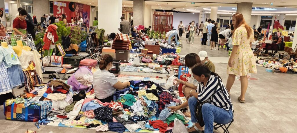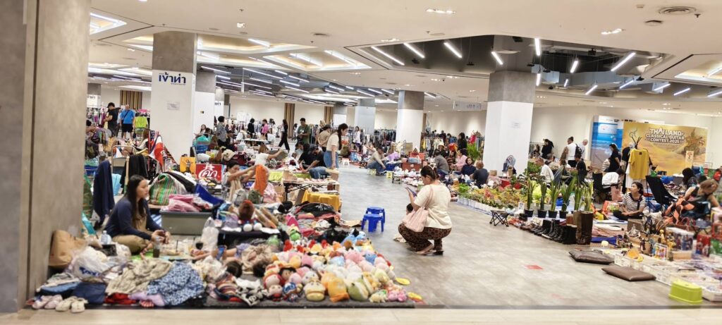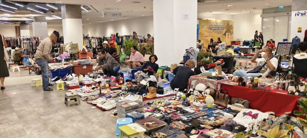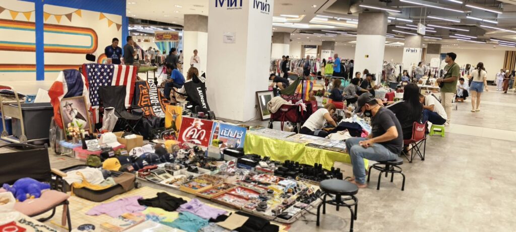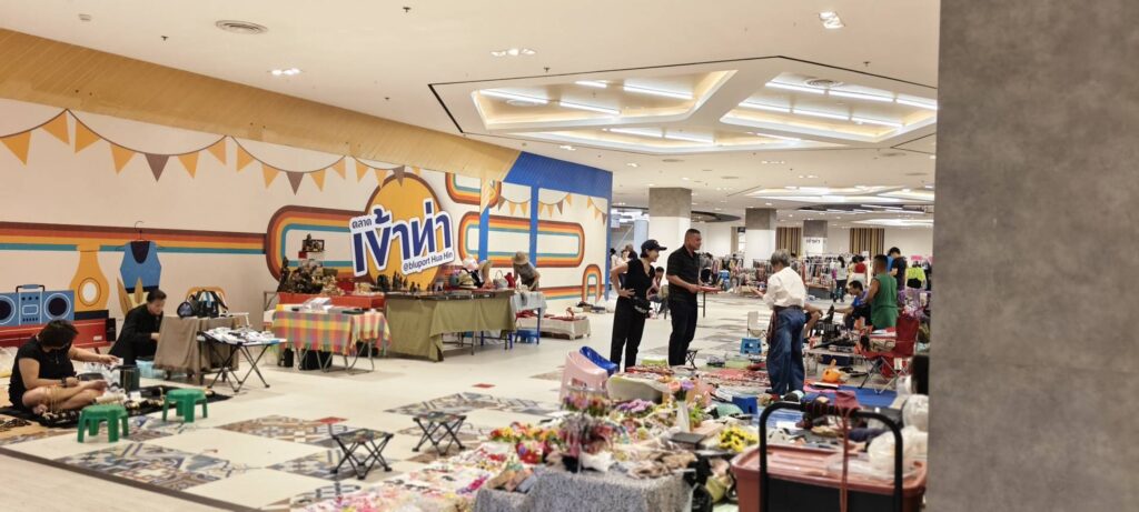 ตลาดนัดติดแอร์ เดินช้อปชิลล์ๆแบบเย็นสบายไปเลย แถมยังมีมุมถ่ายรูปแบบจัดเต็ม ยังไม่หมดเท่านี้ เสื้อผ้า รองเท้า กระเป๋าของทานเล่น คาว หวาน มีหมด ยังมีที่จอดรถสะดวกสบายอีกด้วยน้า ห้ามพลาดเลยน้าา