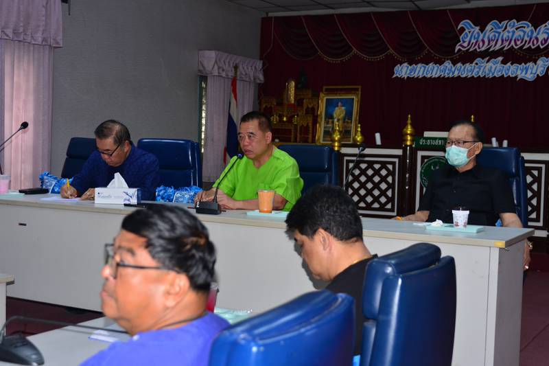 นายกเทศมนตรีเมืองลพบุรี ประชุมคณะผู้บริหารและหัวหน้าส่วนราชการเทศบาลเมืองลพบุรี ที่จัดขึ้นเป็นประจำทุกสัปดาห์